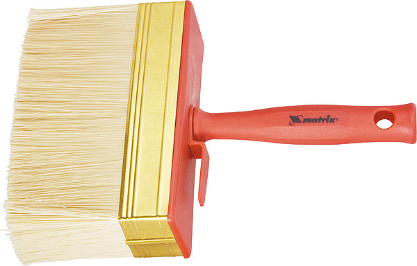 Ворс кисти макловицы – натуральная щетина, расщепленная на концах. Щетина кисти удлинена, надежно закреплена металлическим бандажом с антикоррозийным покрытием. Пластмассовая ручка, утолщенная в зоне охвата, имеет отверстие для подвешивания, а также специальное приспособление для крепления на емкость. Кисть применяется для размывания ЛКМ и окрашивания больших поверхностей. Предназначена для работ с масляными красками, лаками и нанесения клеящих составов.