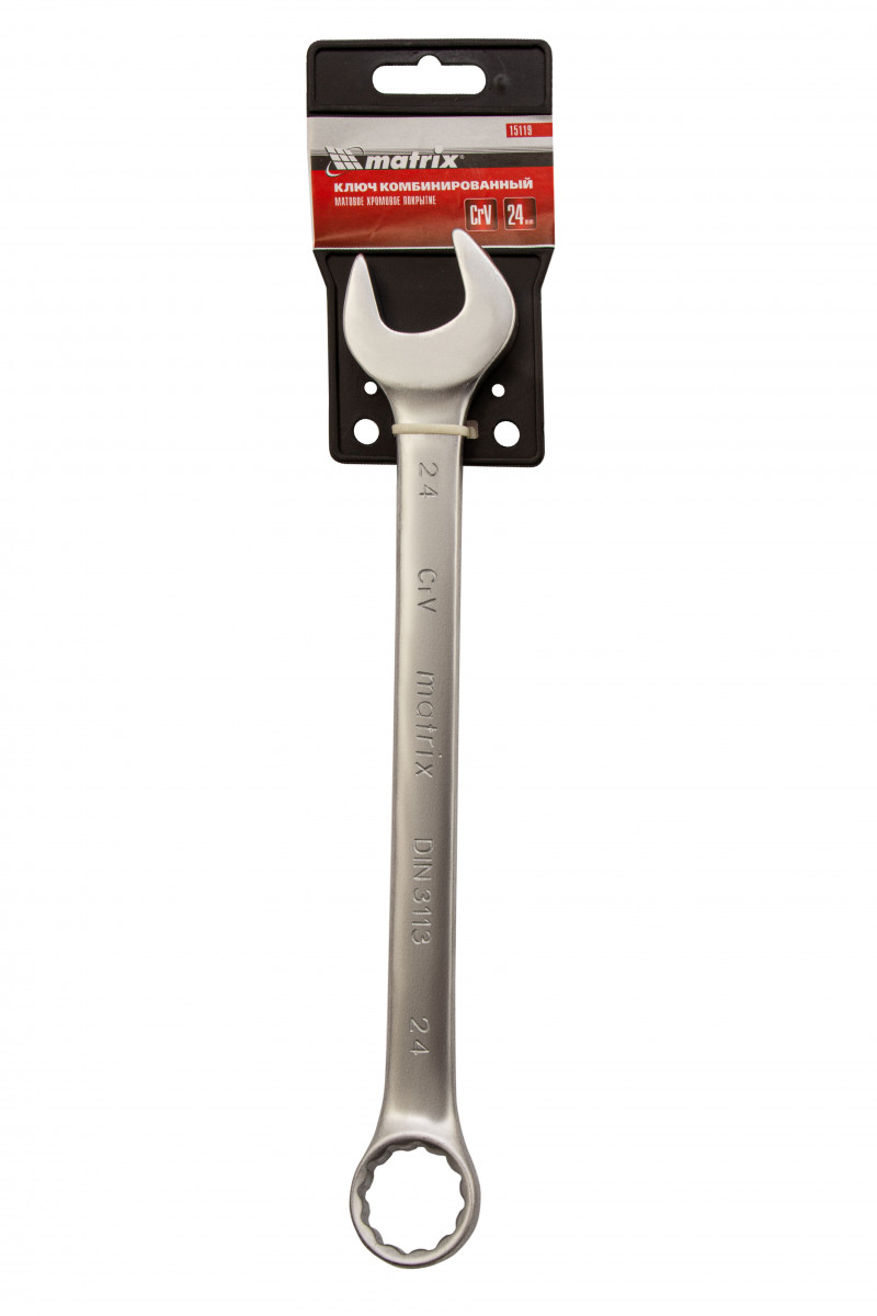 Ключ комбинированный, 24 мм, CrV, матовый хром Matrix