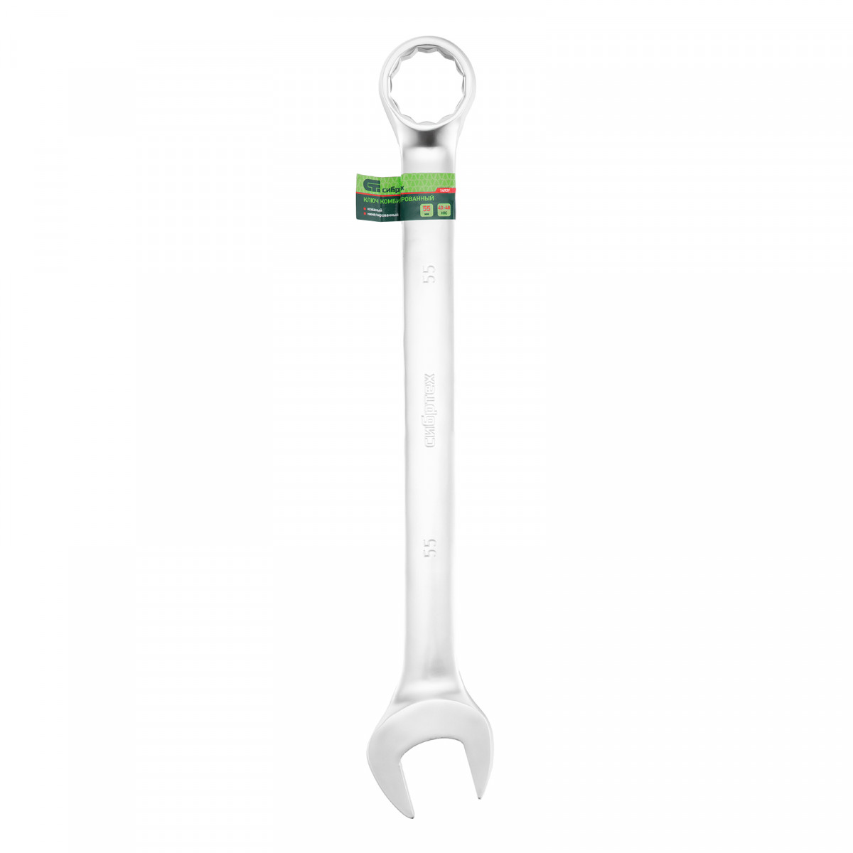 Ключ комбинированный 55мм, никелированный от компании Сибртех — надежный инструмент для работы с крепежом различных размеров.