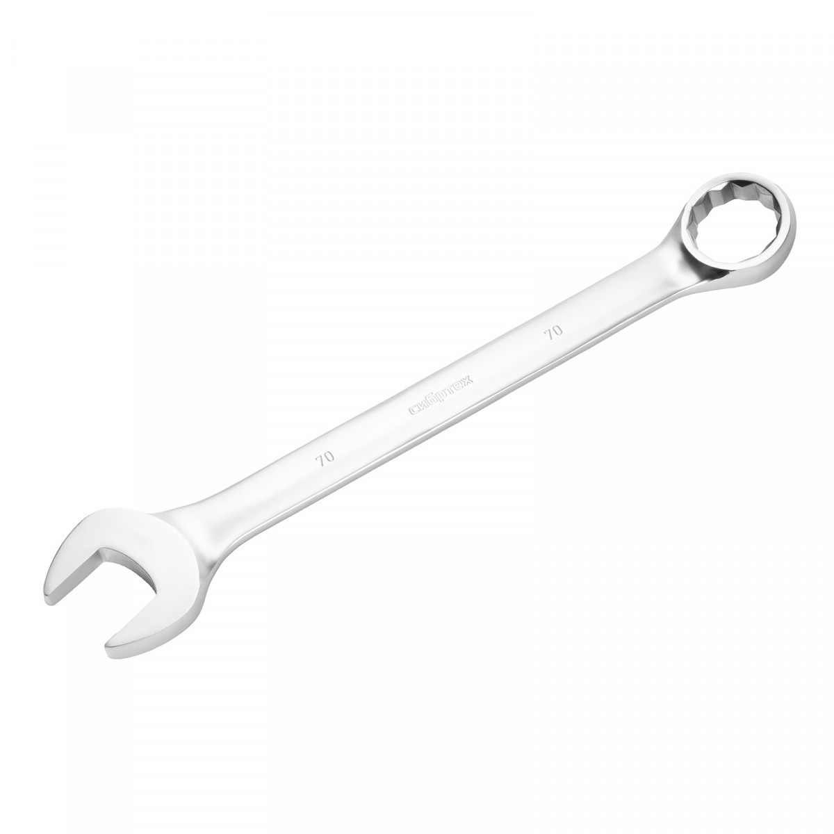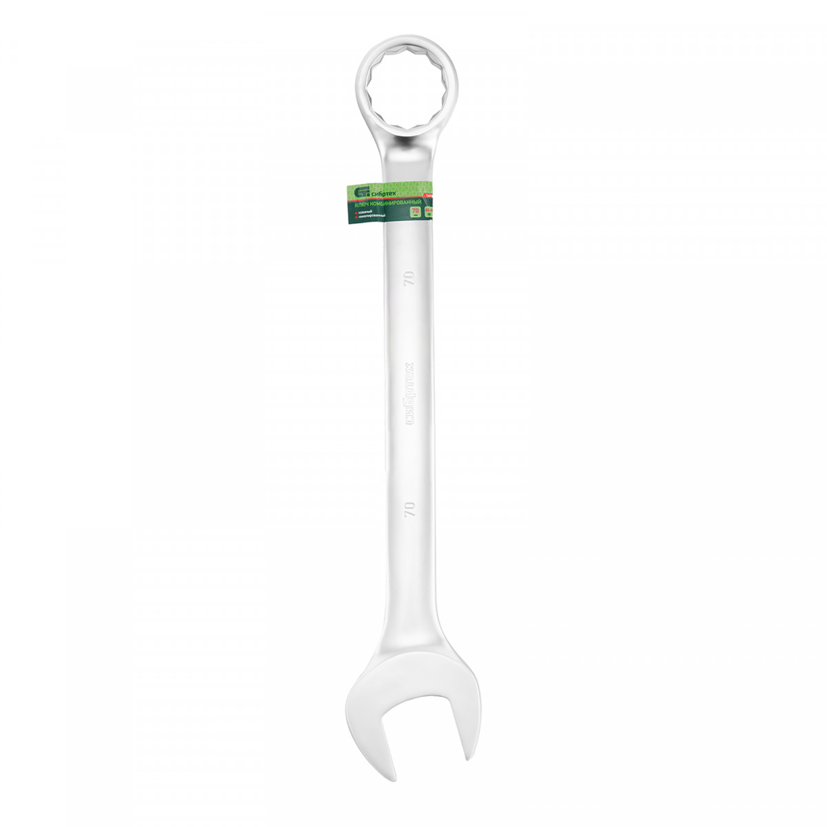 Ключ комбинированный 70мм, никелированный Сибртех — надежный инструмент для работы с крепежом различных размеров.