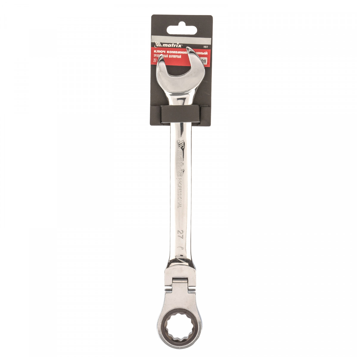 Ключ комбинированный трещоточный, 8 мм, CrV, шарнирный, зеркальный хром Matrix Professional