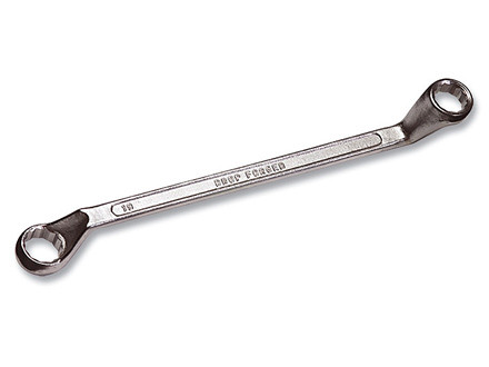 Ключ двухсторонний накидной коленчатый предназначен для работы с шестигранным и четырехгранным крепежом соответствующих размеров. Изготовлен из хромванадиевой стали, матовая полировка.Твердость рабочей части 44-48HRc