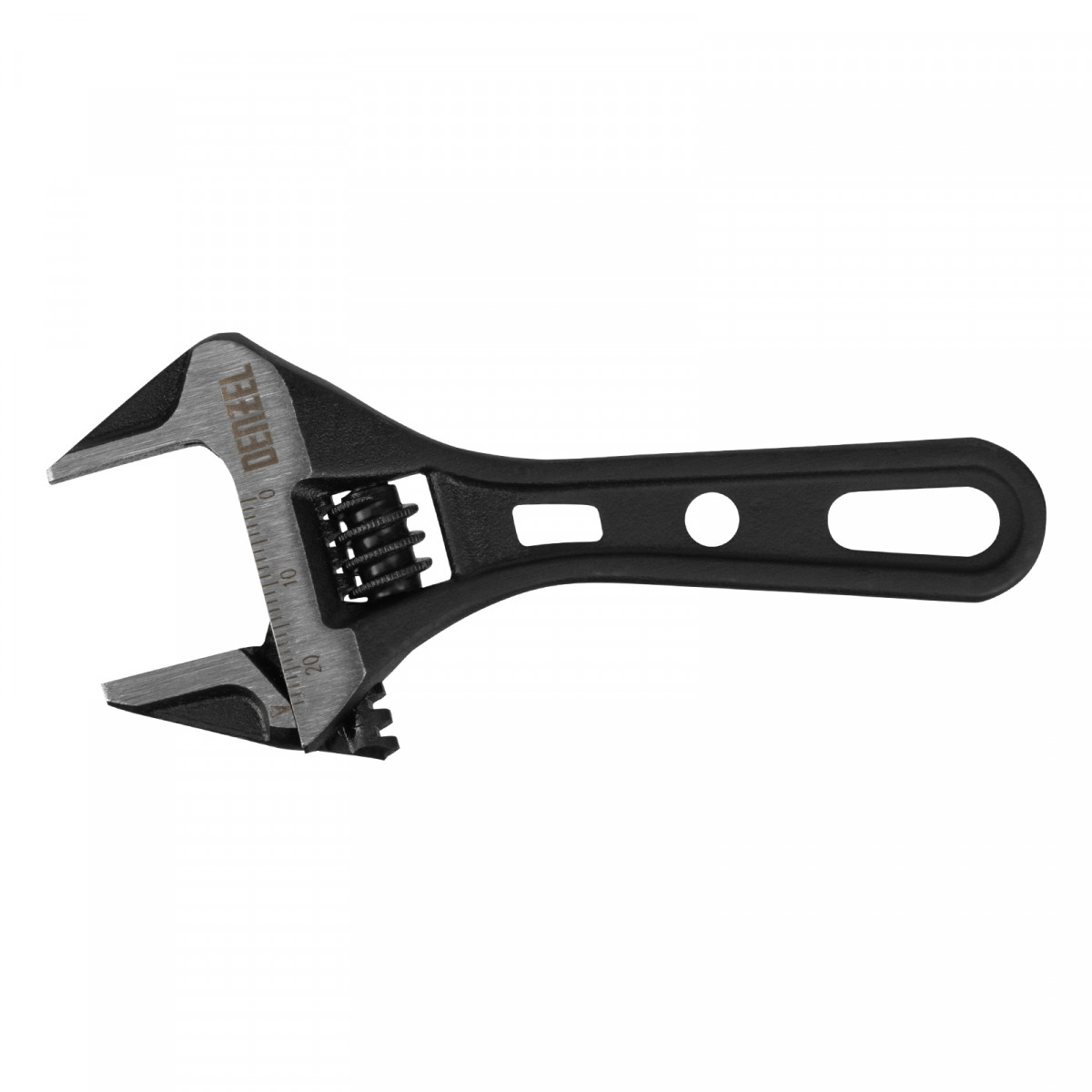 Ключ разводной кованый Denzel 15751 длиной 115 мм, из стали CrV, с укороченной рукояткой и увеличенным раскрытием губок, используется для монтажа и демонтажа крепежных элементов диаметром до 24 мм. Благодаря тонким губкам и укороченной рукоятке удобен для работы в труднодоступных местах. Имеет широкую область применения: сантехнические работы, мелкий бытовой ремонт, полупрофессиональная сфера и т. д.