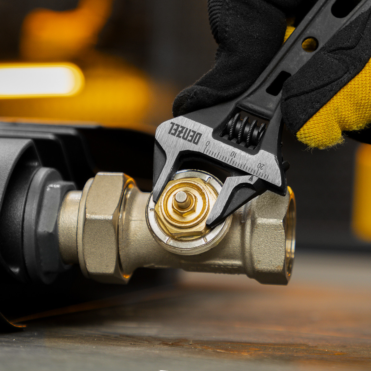 - Удобная эксплуатация — метрическая линейка на ключе помогает выставить нужный размах зева.