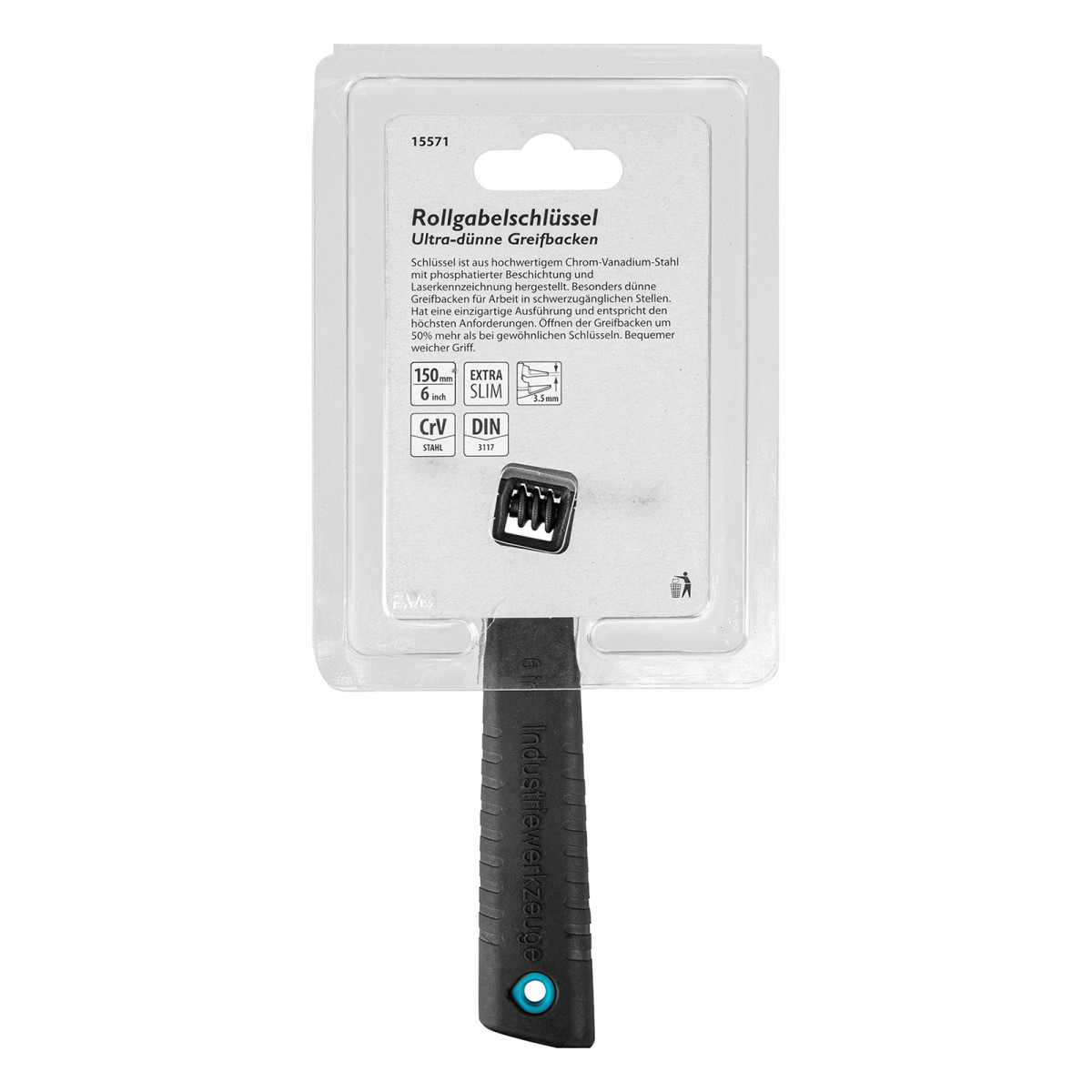 Разводной ключ Gross 15571 длиной 150 мм, из стали CrV, с ультратонкими губками, оптимален для монтажа и демонтажа крепежных элементов диаметром до 34 мм. Имеет широкую область применения: сантехнические работы, мелкий бытовой ремонт, полупрофессиональное использование и т. д. Благодаря ультратонким губкам инструмент особенно удобен для работы в труднодоступных местах.