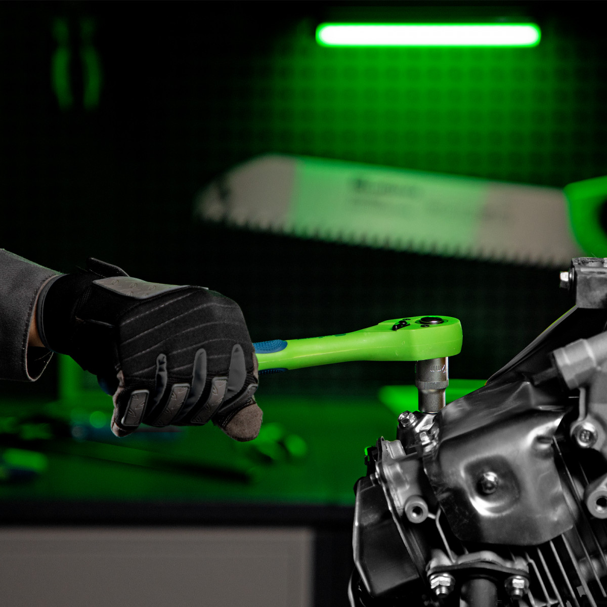 • Удобная работа в ограниченном пространстве — шаг трещотки составляет всего 5°.