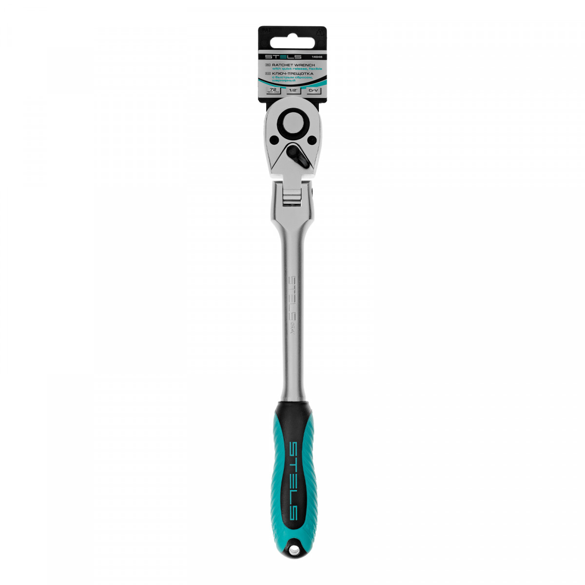 Ключ-трещотка шарнирный 1/2", СrV, 72 зуба, с быстрым сбросом, матовый хром Stels