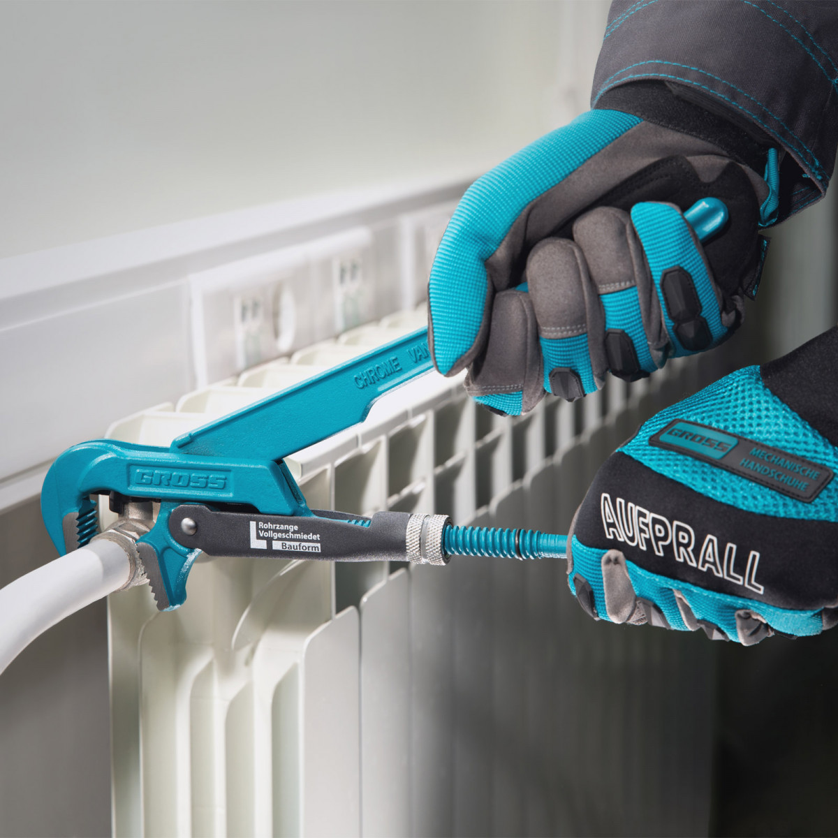 - Самоблокируемый захват труб и деталей — зубья прогрессивной формы наклонены против направления вращения.