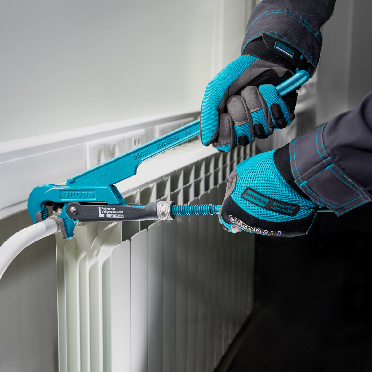 Самоблокирующий захват труб и деталей благодаря зубьям прогрессивной формы.