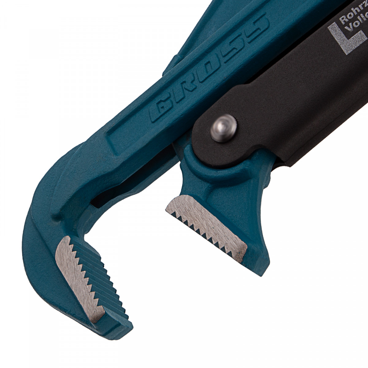 - Самоблокируемый захват труб и деталей — зубья прогрессивной формы наклонены против направления вращения.