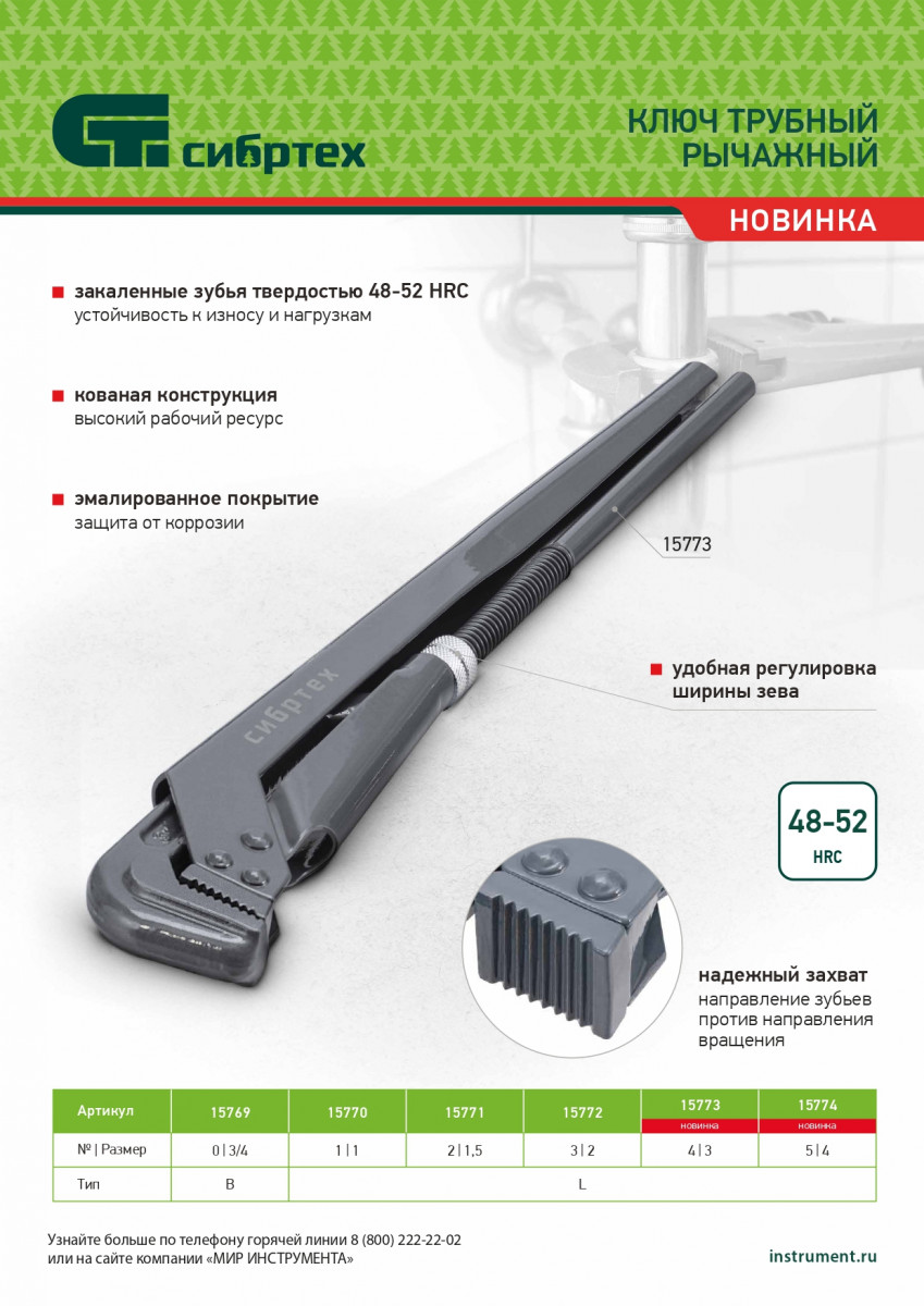 Ключ трубный рычажный КТР-0, 1/2", кованый, тип "B" Сибртех