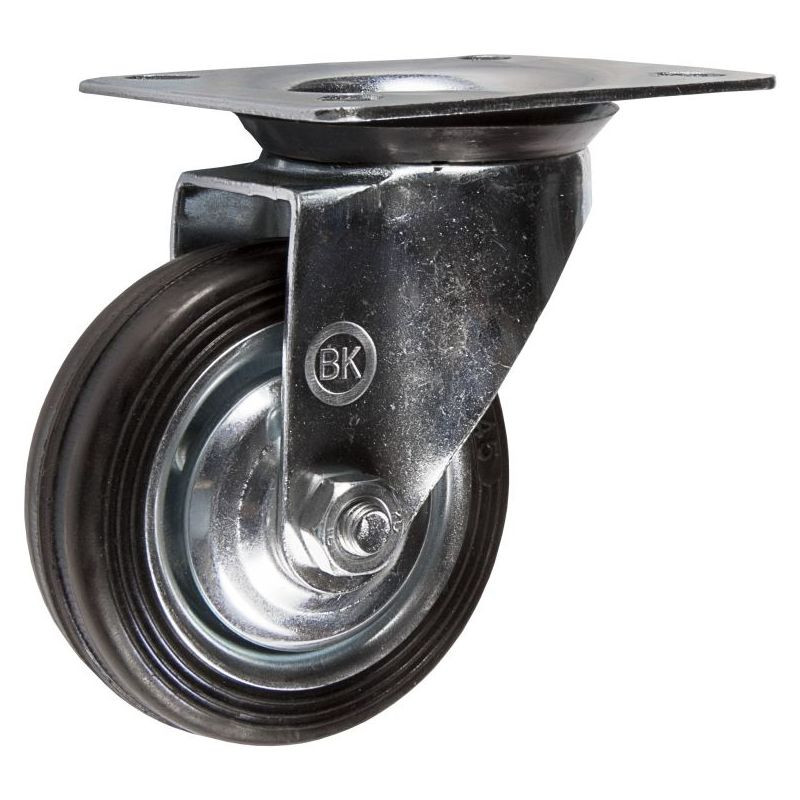 Поворотная колесная опора отлично подойдет для транспортировки грузов средней степени тяжести. Колесо оснащено роликовым подшипником.Данная серия колесных опор отлично адаптирована к эксплуатированию в помещениях и на грубой уличной поверхности. Колесные опоры используются для складского, лабораторного, медицинского и торгового оборудования. Обод поворотного колеса sc изготовлен из высокопрочной стали и оцинкован. Сама шина колеса SC выполнена из черной резины высокого качества, которая справляется с различными воздействиями внешней среды и поглощает вибрации и шум.Рекомендуемая скорость транспортировки груза на тележке с данным видом колес не более 4 км/ч. Заводской температурный режим для данной серии варьируется между -25С° и +40С°. Кронштейн поворотный с площадкой крепления под 4 болта.