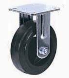 Колесные опоры большегрузные неповоротные, литая черная резина, чугунный обод, платформенное крепление, роликоподшипник.