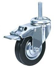 Колесная опора поворотная с тормозом, обод - прессованный из листовой стали, шинка - литая черная резина, болтовое крепление, роликоподшипник.