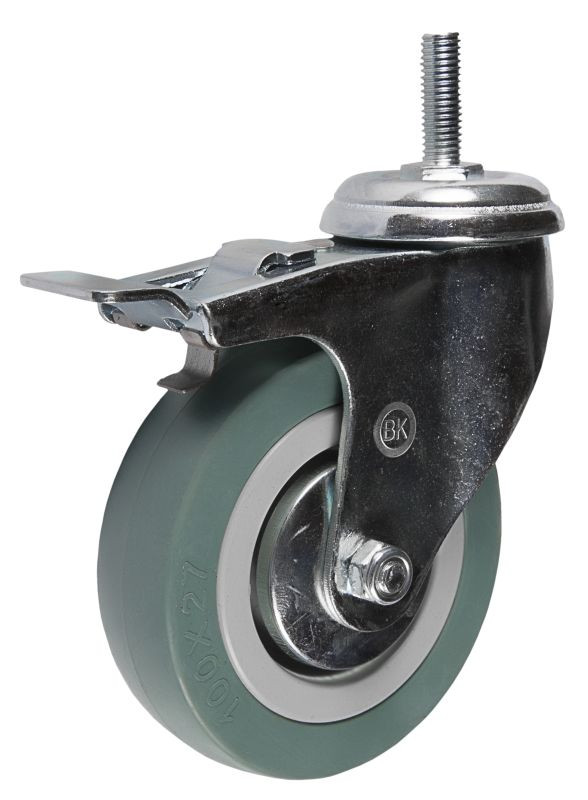 Колесо аппаратное SCtgb25 со штырем и тормозом относится к легкой серии колес. Ободная часть аппаратной колесной опоры со штырем и тормозом SCtgb25 изготовляется из серого полипропилена с двумя боковыми пыльниками, защищающими осевой механизм от повреждения посторонними веществами и пылью.