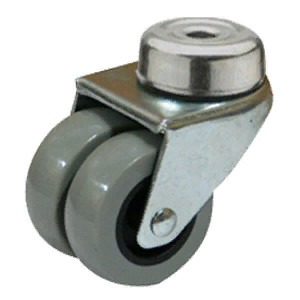Колесные опоры аппаратные поворотные сдвоенные, полиуретановое покрытие, полипропиленовый обод, крепление под болт, подшипник скольжения. Серая резина обладает очень мягким ходом и является достаточно маневренной. Данная опора оснащается двухрядным шарикоподшипником и имеет втулку скольжения оси. Шинка колесной опоры серая резина изготавливается из полипропилена серого цвета, чьей особенностью является шумопоглощение, малая вибрация и отсутствие следов на поверхности. Эта серия колес часто применяется при изготовлении медицинского передвижного оборудования, различных деталей мебели, складских тележек. Заводской температурный режим для данной серии варьируется между -20С° и +50С°. В качестве крепления использован кронштейн, который выполнен из специальной стали с оцинковкой.