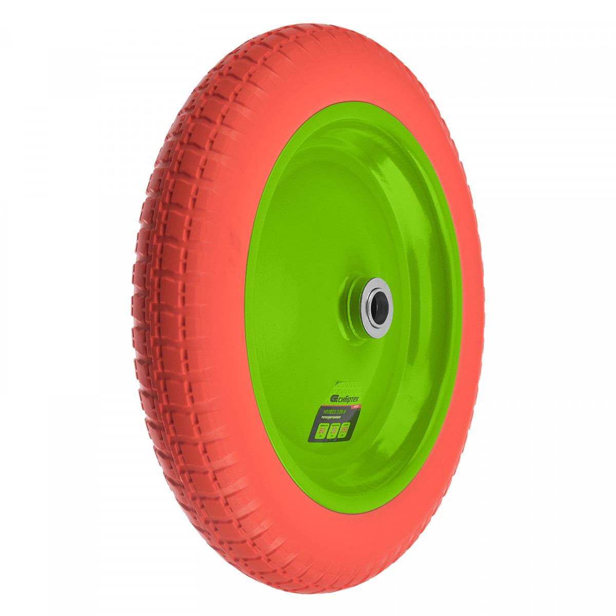 Полиуретановое колесо 3.00-8 Сибртех 689795 с длиной оси 80 мм и диаметром подшипника 20 мм — движущий элемент тачки 68936. Непрокалываемое колесо подходит для использования в самых жестких условиях. В отличие от пневматических колес не требует подкачки, обслуживания и легко отмывается от грязи.