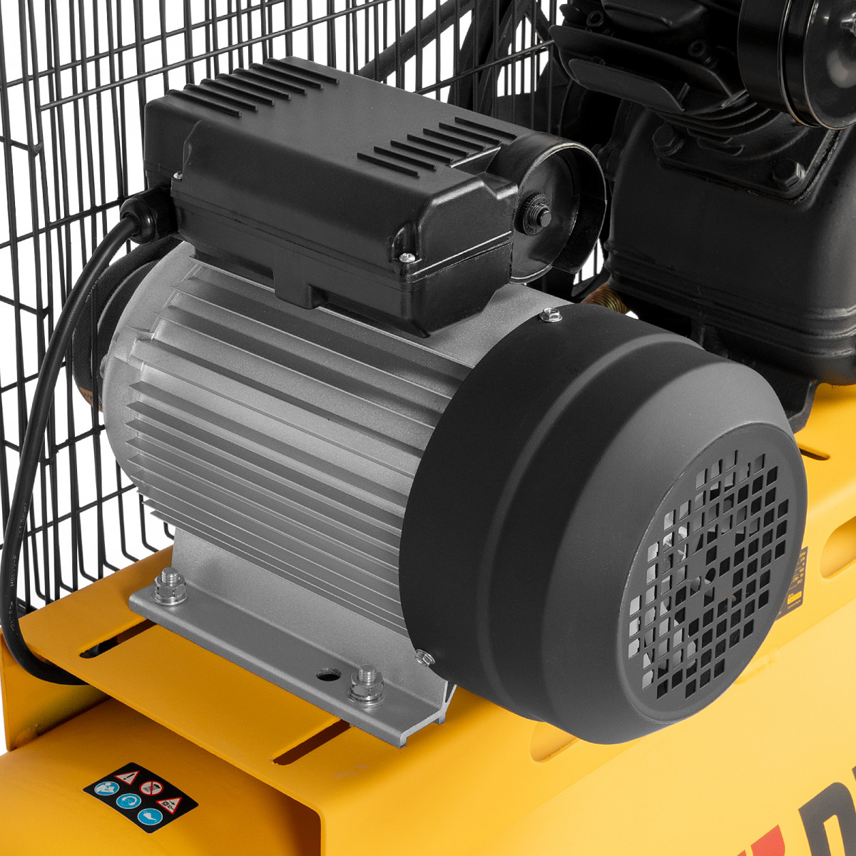 • Устойчивость — опоры с прорезиненным покрытием позволяют удобно разместить компрессор и гасят вибрации.