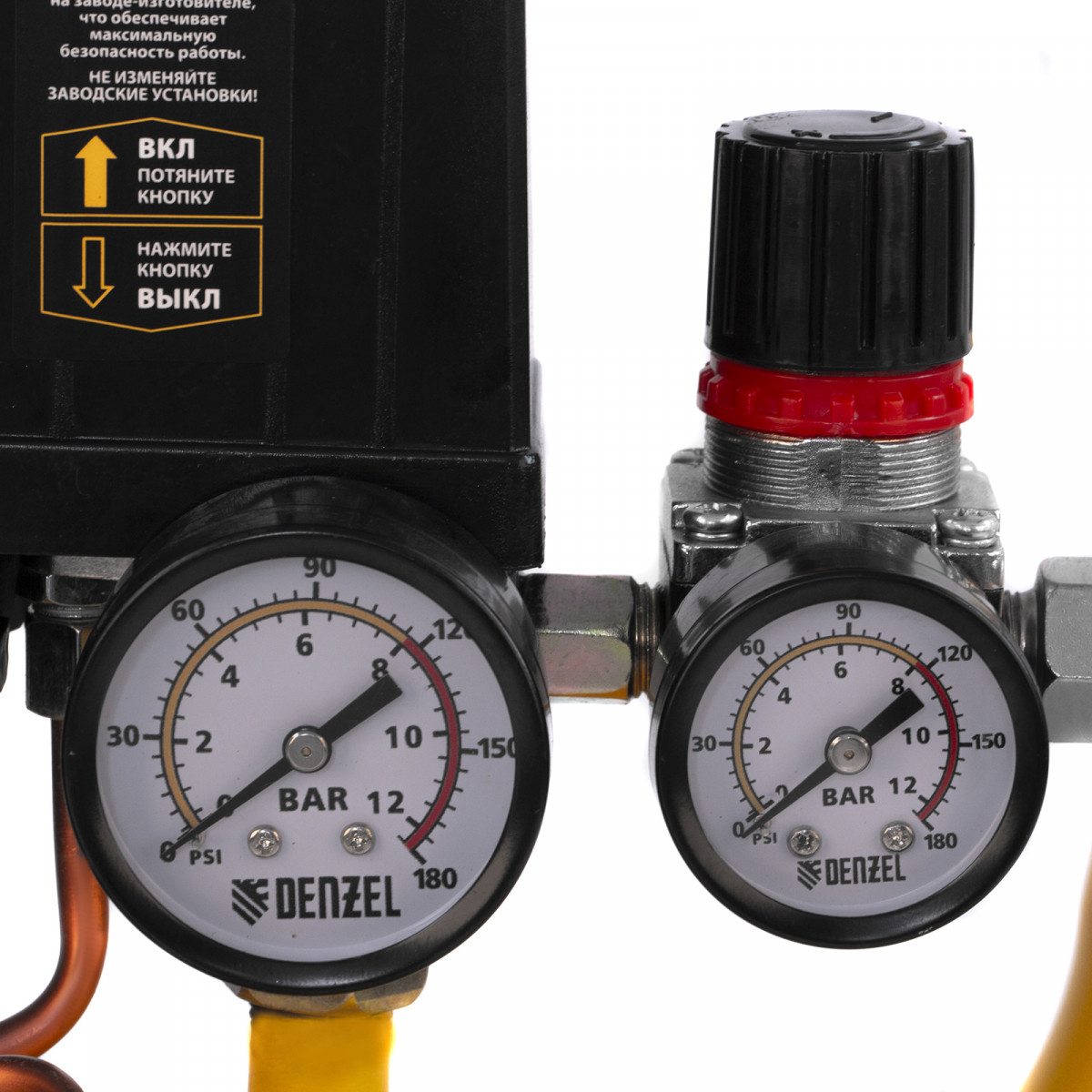 • Удобный контроль рабочих параметров — 2 манометра отображают давление в ресивере и выходной магистрали.