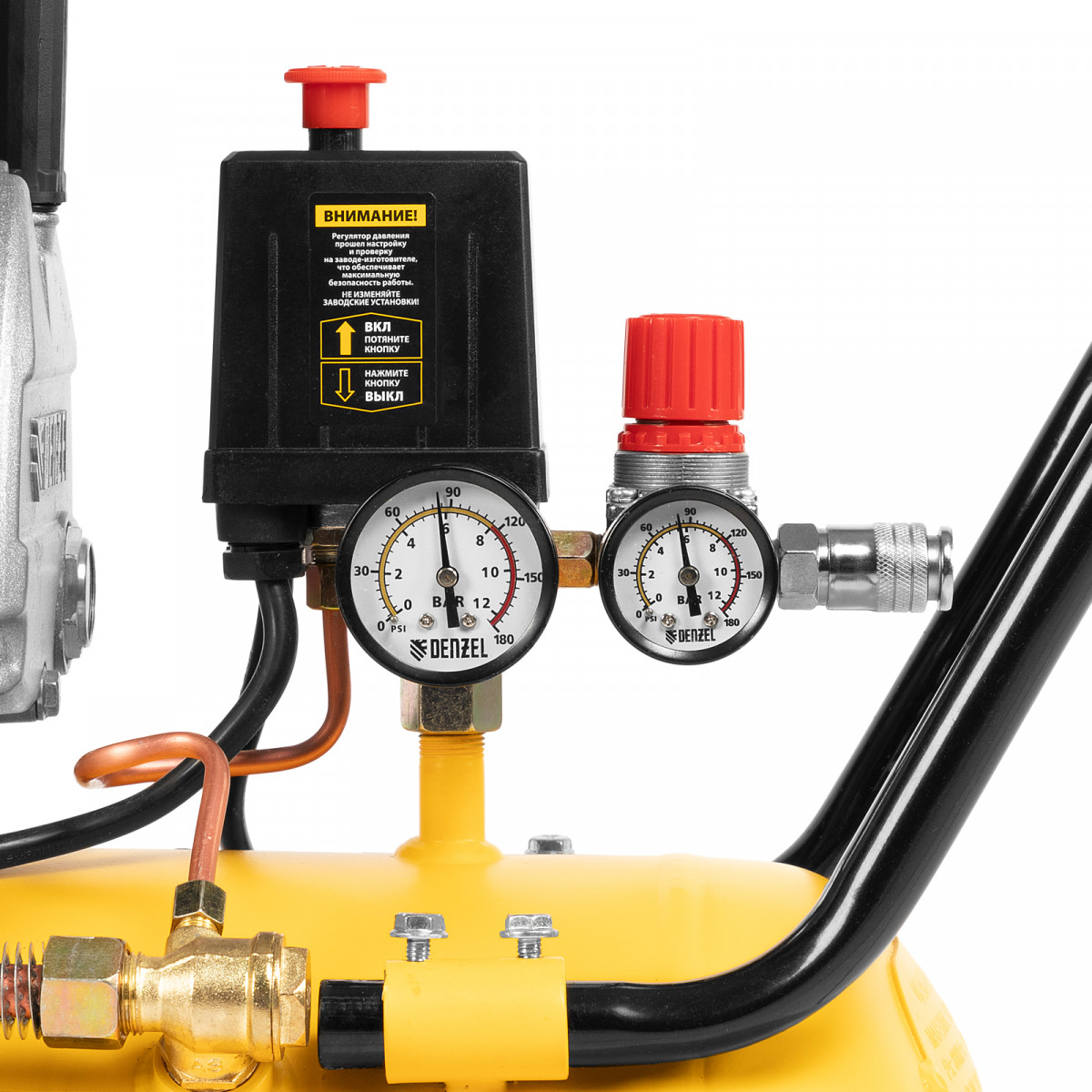Воздушный компрессор Denzel DKV2200/50 Х-PRO 58083 мощностью 2,2 кВт, с объемом ресивера 50 л сжимает за минуту до 400 л воздуха и предназначен для применения в быту, на станции СТО и строительной площадке. Используется для обеспечения сжатым воздухом пневмоинструмента, например, пневмозубила, пневмогайковерта, пневмомолотка, пневмодрели. 2 евроконнектора позволяют подключить одновременно несколько инструментов для повышения эффективности работы.