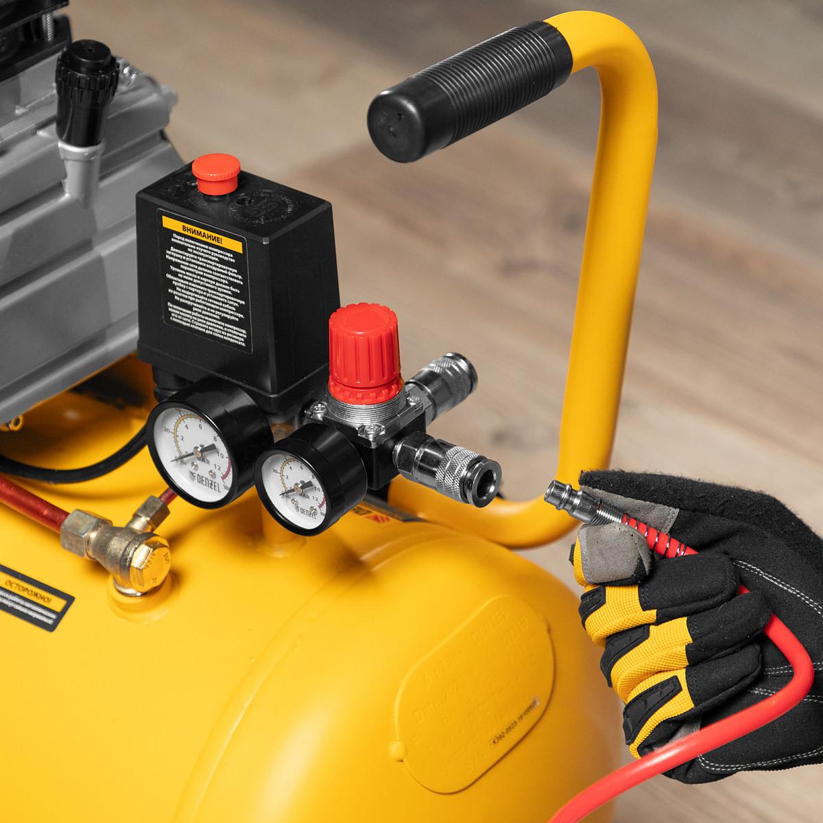 • Быстрое подключение пневмоинструмента — компрессор оснащен быстроразъемным коннектором Euro (Rapid).