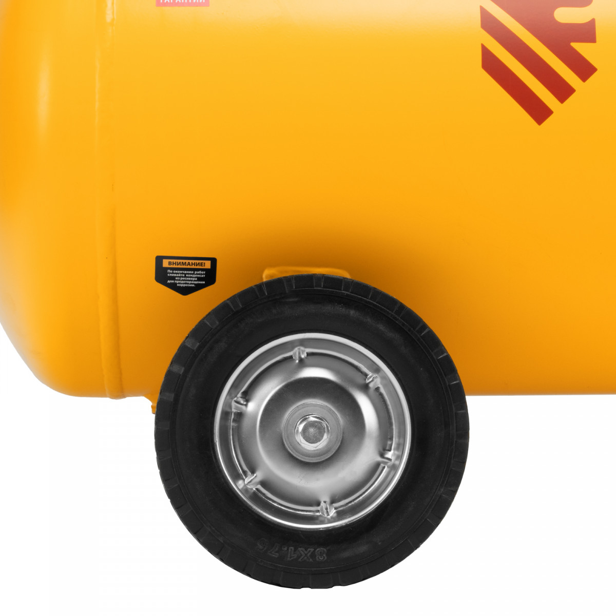 • Удобная транспортировка — на компрессоре установлены колеса, в т. ч. поворотные, и П-образная рукоятка.