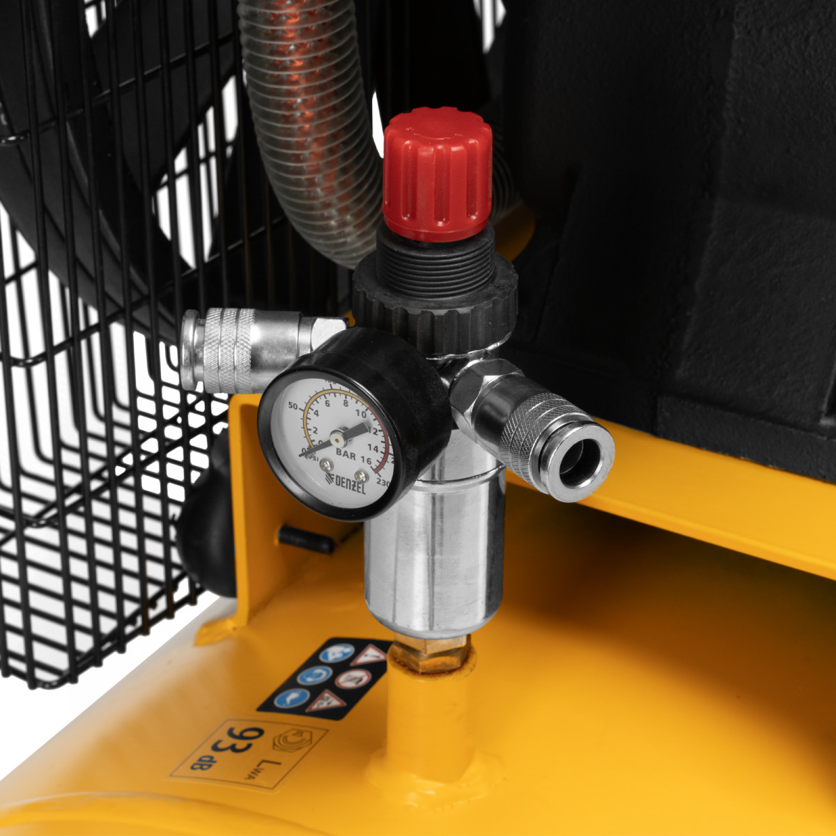 • Удобный контроль давления в ресивере и пневмомагистрали — компрессор оснащен двумя механическими манометрами.