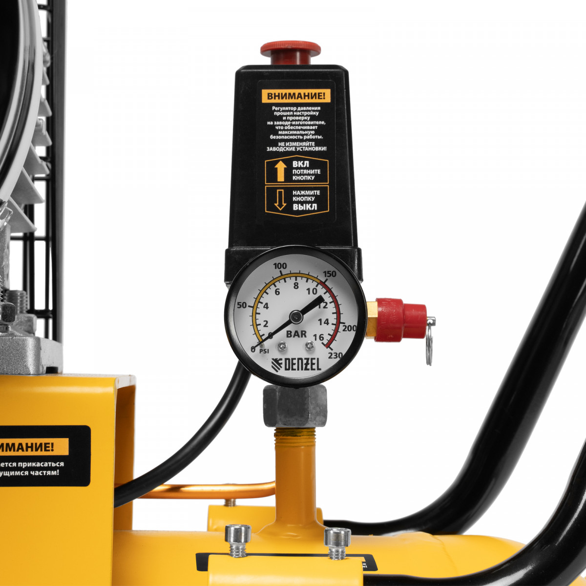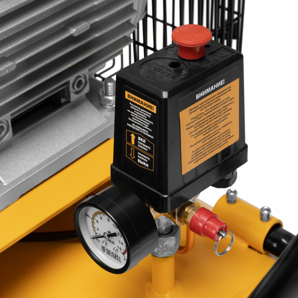 • Безопасность — в случае превышения максимально допустимого давления в ресивере срабатывает предохранительный клапан.