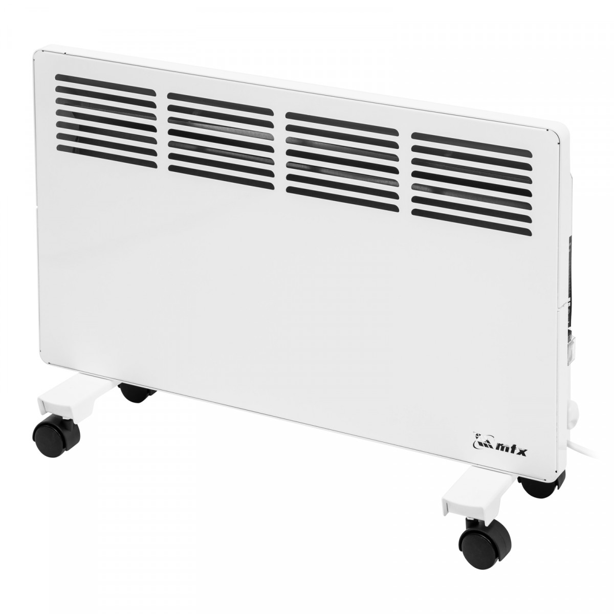 Конвектор электрический MTX KM-2000.2 98126 с X-образным нагревателем, колесами и термостатом, мощностью 2000 Вт, предназначен для использования в закрытых помещениях: квартирах, офисах, на производствах, в общественных местах и т.д. Рекомендуемая площадь обогрева составляет 25 кв.м. Х-образный нагревательный элемент обеспечивает быстрый и равномерный прогрев помещения до необходимой температуры, при этом не сушит воздух.