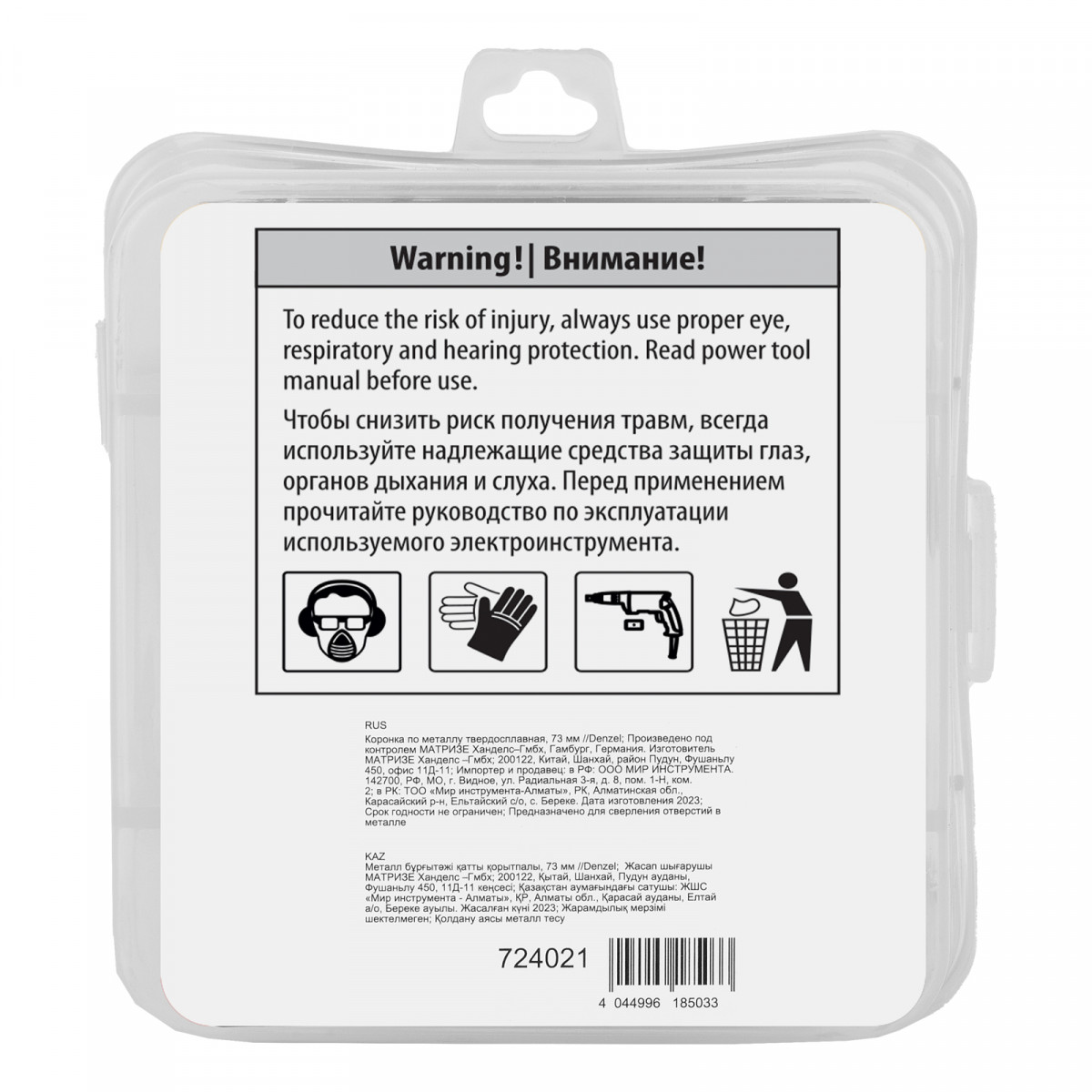 Коронка по металлу твердосплавная, 73 мм Denzel