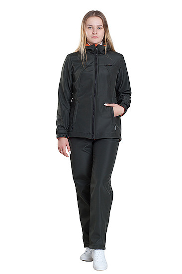 Удобный и современный женский костюм для прогулок и активного отдыха на природе. Из современной трехслойной ткани ПОНЖИ. Ткань прочная и дышащая, с водоотталкивающим покрытием, быстро сохнет и обеспечивает воздухообмен. В этой куртке вы будете чувствовать себя защищенной от влаги и ветра в холодное демисезонье. Приталенная куртка на молнии удлиненная сзади с двумя карманами в рельефах и одним внутренним будет удобна вам по фигуре. Капюшон с регулировкой по объему и глубине защитит лицо от влаги и ветра. Комбинезон с завышенной талией сзади небольшой спинкой для защиты от холода.