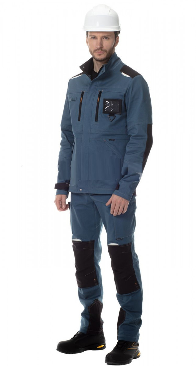 Брюки анатомической формы с застежкой на гульфик с молнией и джинсовую пуговицу на поясе. Пояс со шлевками для ремня, одна из них с пластикой рамкой для крепления карабина или ретрактора. Регулировка объема по талии за счет боковых вставок.