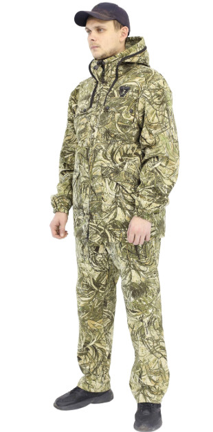 Костюм состоит из куртки с четырьмя карманами в одном из которых находится антимоскитная сетка и брюк с двумя карманами. Куртка прямого силуэта, удлинённая Капюшон не съёмный Центральная застёжкой на молнии Верхние накладные карманы нижние врезные Рукава на резинке Брюки на резинке , с двумя накладными карманами