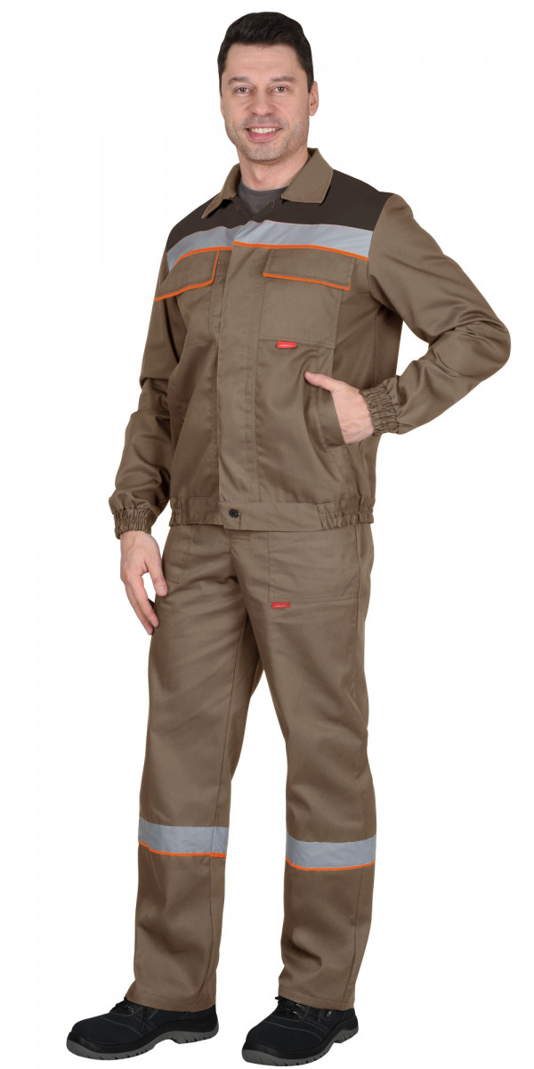 Костюм МАСТЕР летний: куртка кор.,п/к.кофейный с т.-коричневым и оранж.кантом