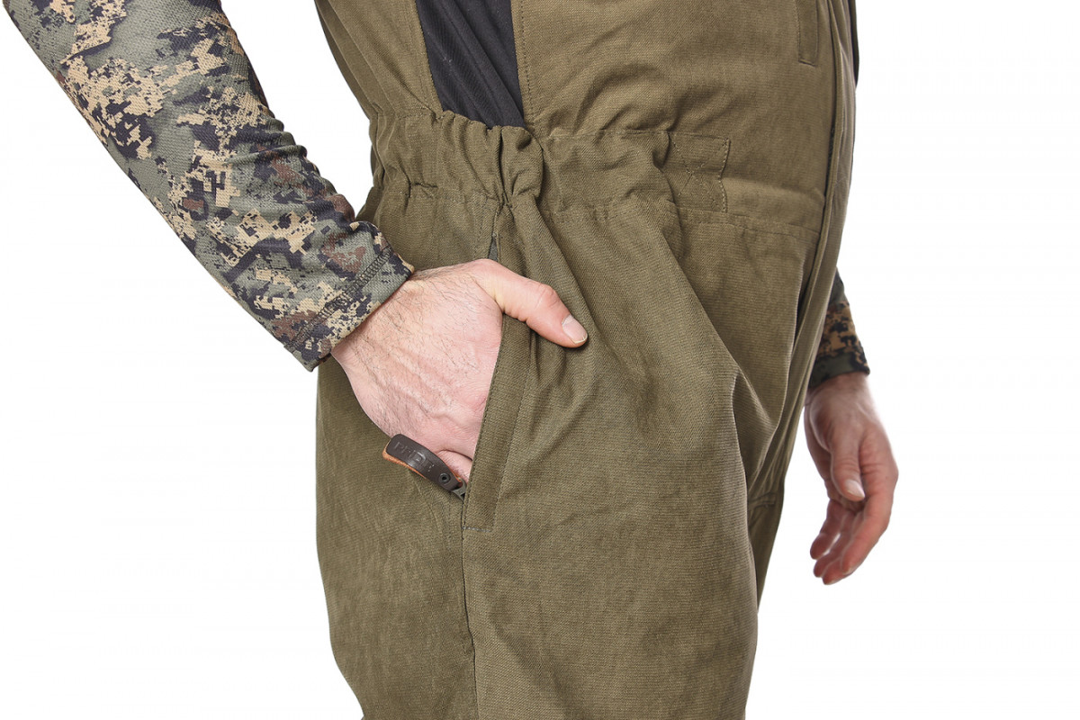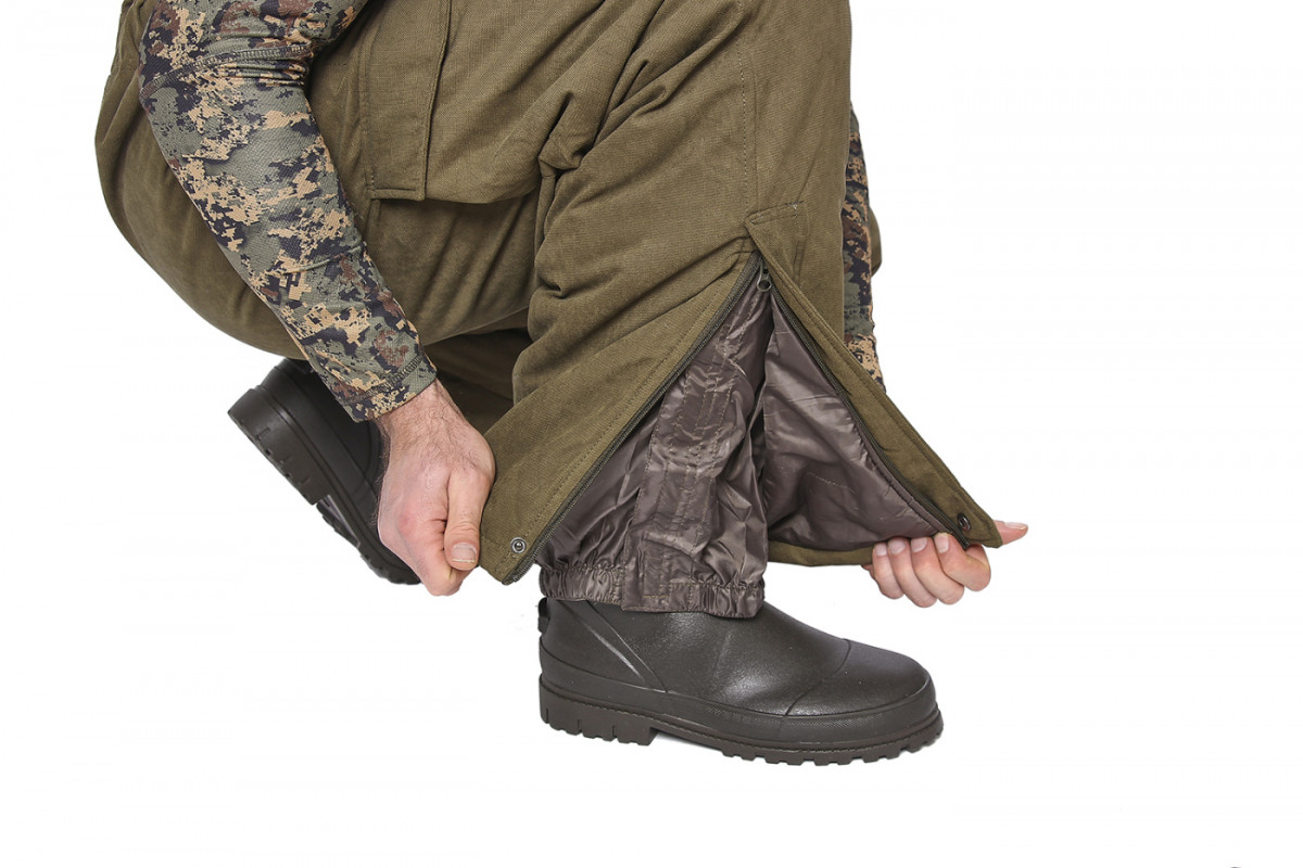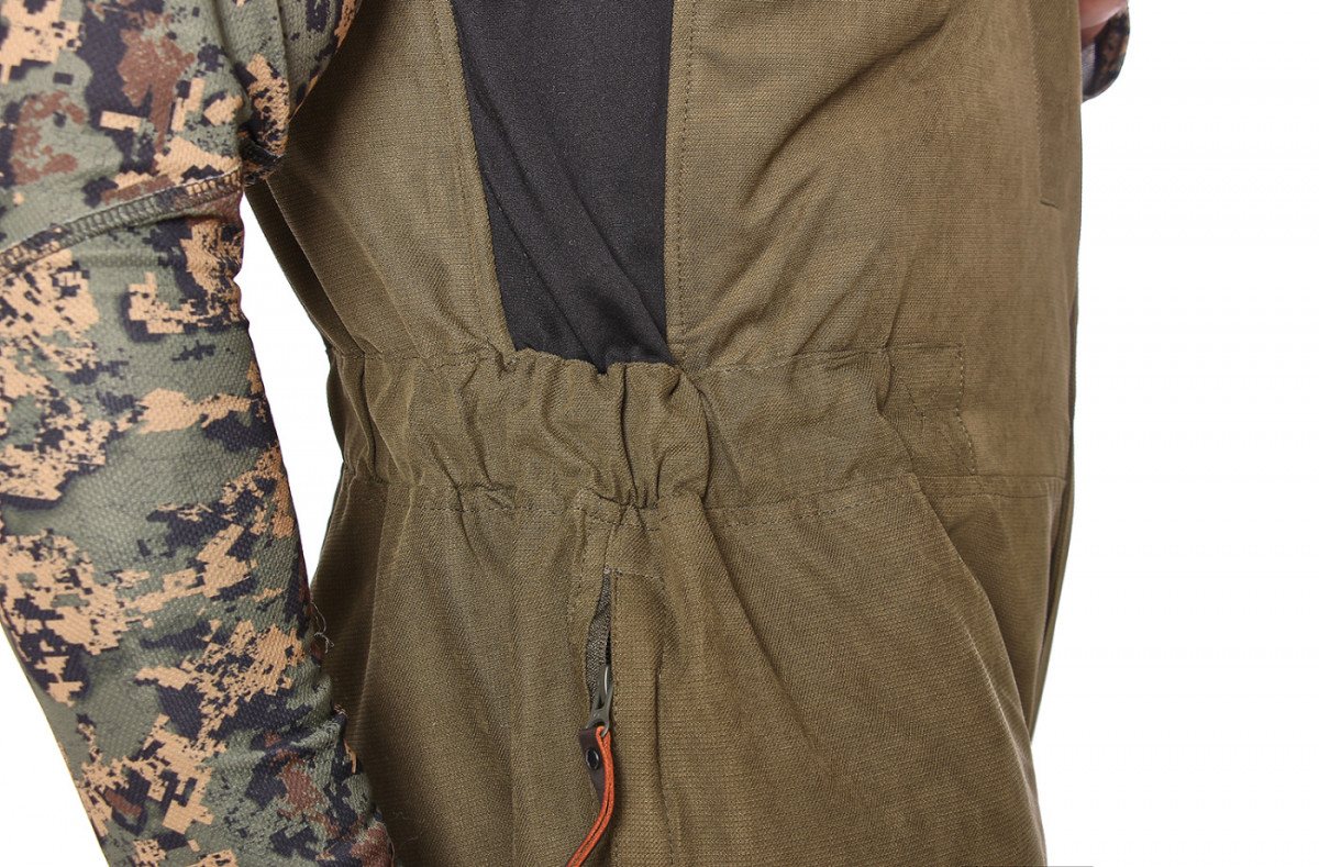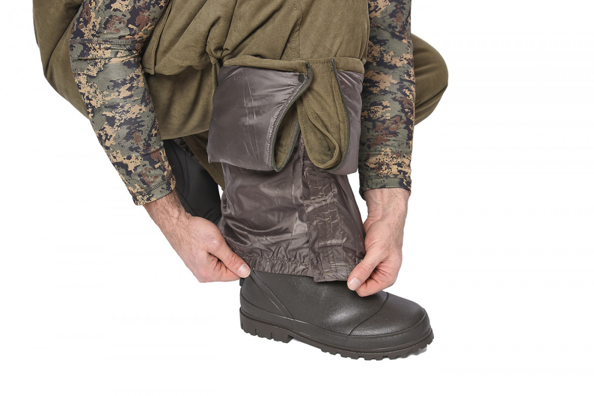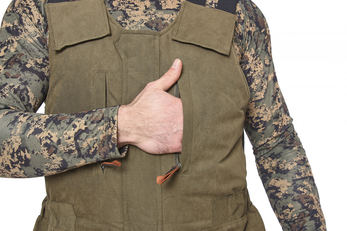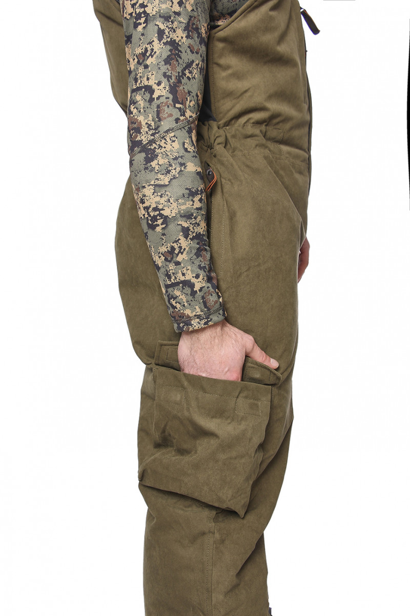 Бесшумный костюм идеально подойдет для охотников. Куртка удлиненная анатомического кроя. Центральная застежка на двухзамковую «молнию», закрыта ветрозащитными клапаном. На куртке пять функциональных карманов. На рукаве есть потайной карман с повязкой сигнального цвета. Комбинезон прямой утепленный, с регулируемыми бретелями и центральной застежкой на двух замковую молнию с ветрозащитным клапаном. На полукомбинезоне пять карманов.