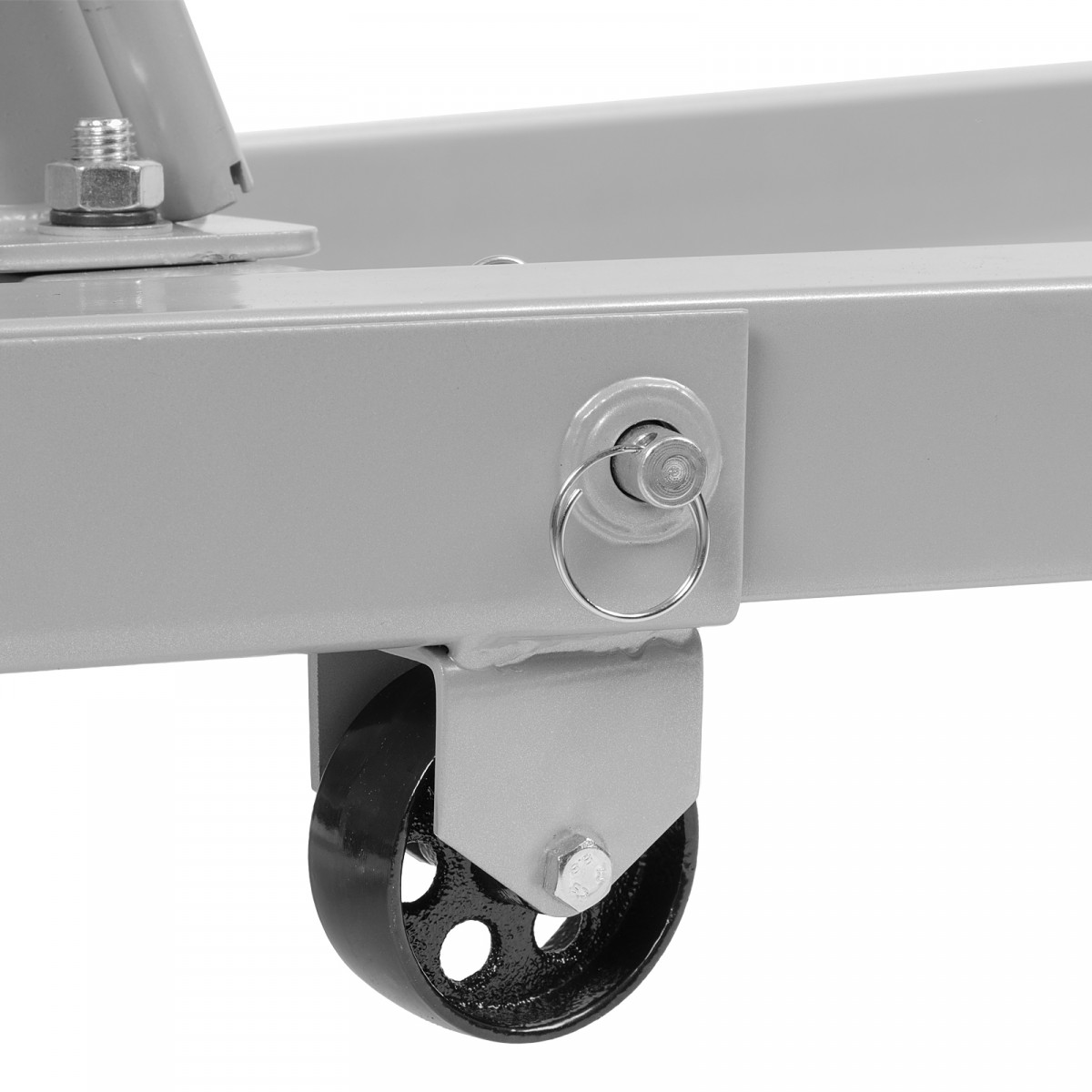 - Мобильность — кран оснащен 4 колесами и специальными рукоятками для удобного перемещения.