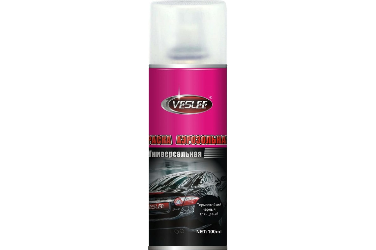 Краска аэрозольная акриловая термостойкий черный глянец VESLEE 100 мл 80 гр