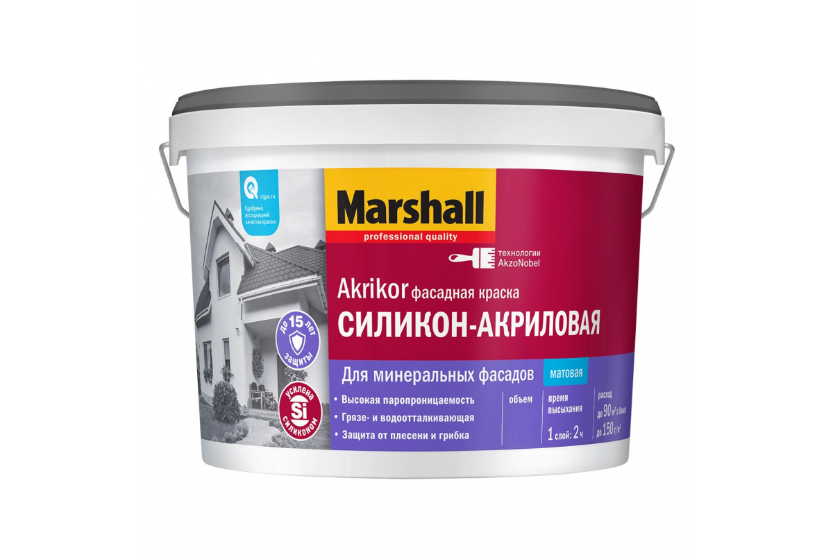 Краска Marshall AKRIKOR Фасадная силикон-акриловая мат BW 2,5л