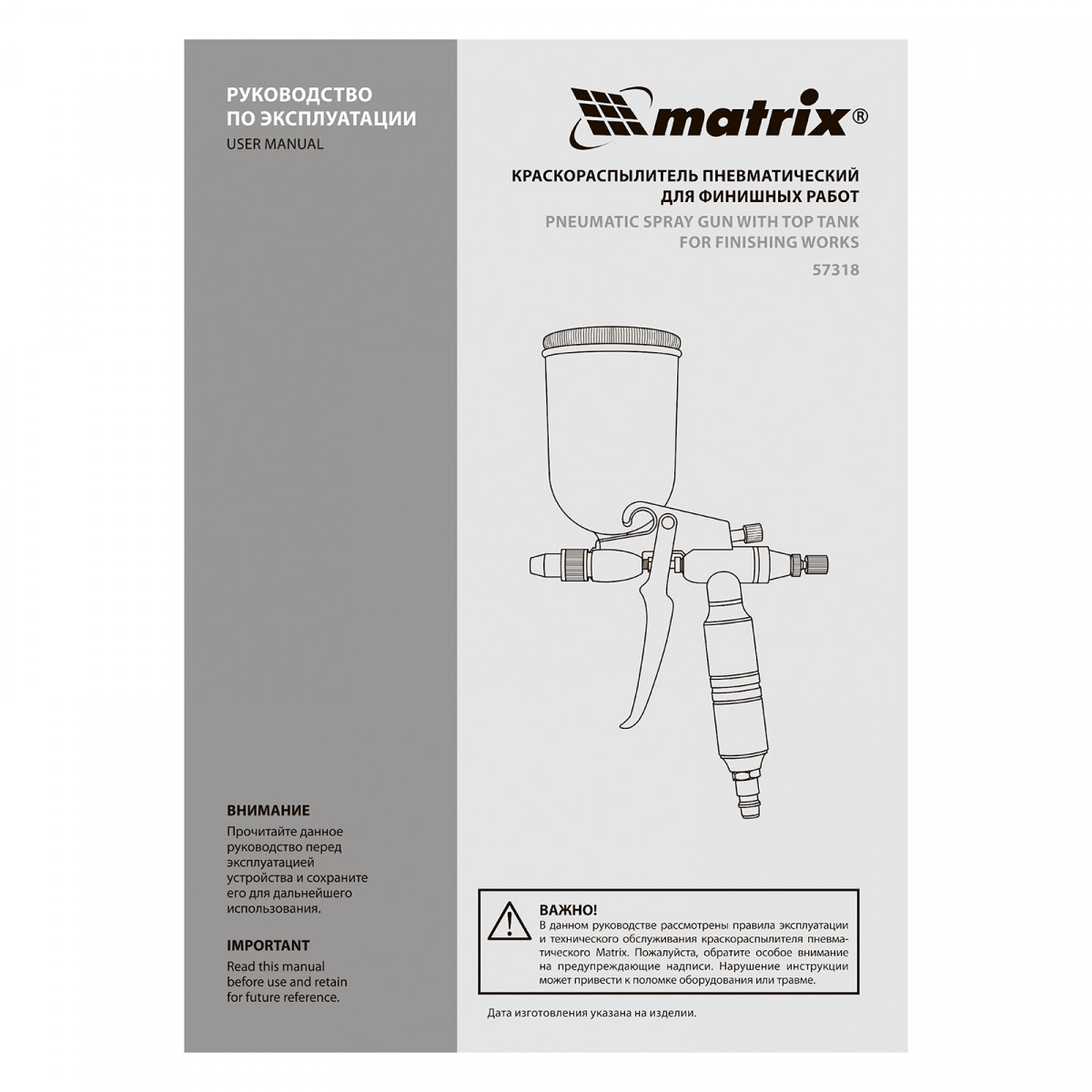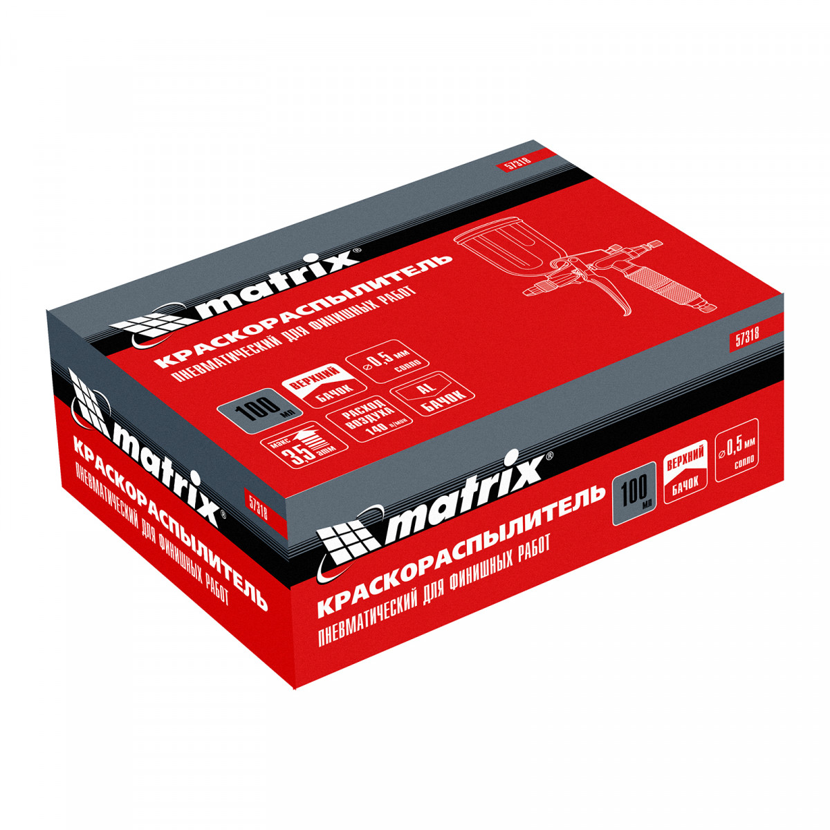Краскораспылитель пневматический для финишных работ с верхним бачком V 0,1 л, сопло D 0.5 мм Matrix