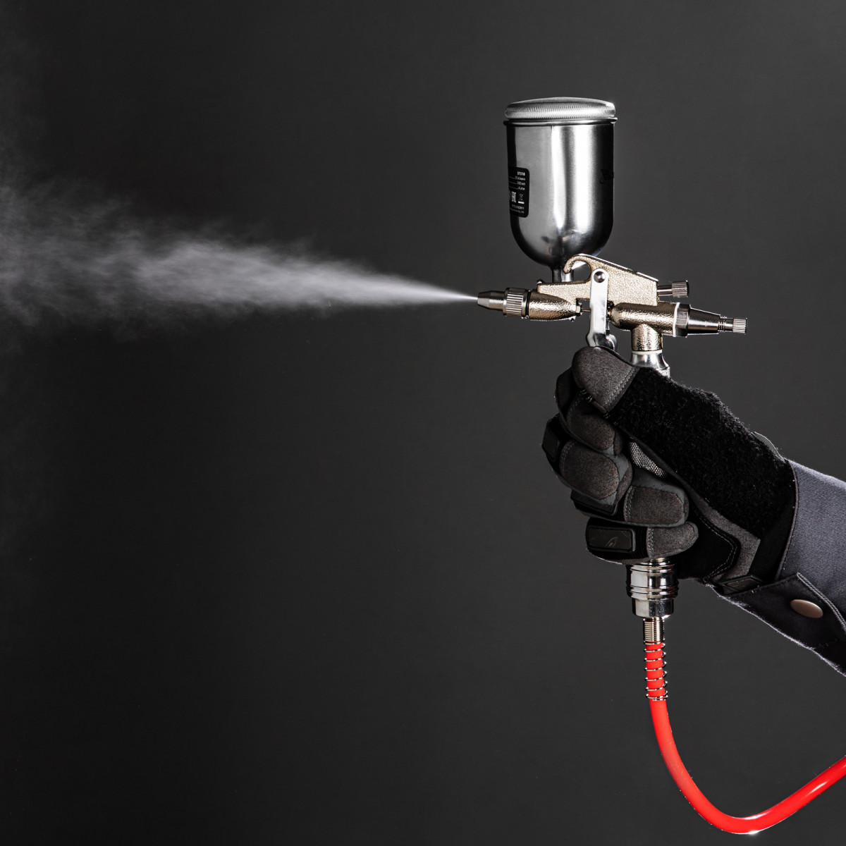 • Малый вес 0,4 кг — даже продолжительная работа краскораспылителем не вызывает дискомфорт.