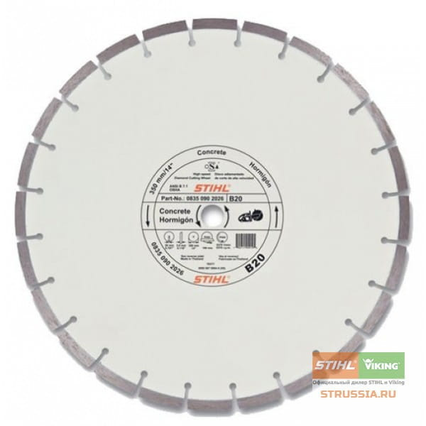 Алмазный диск Stihl 350 мм В20 используется для резки бетона, глиняного кирпича и бетона с обсыпкой. Также подходит для армированного бетона и традиционных строительных материалов. Класс 20 по мощности двигателя. Рекомендуется мокрая резка с подключением к мобильному напорному резервуару для воды.Особенности и преимущества:Для резки бетона
