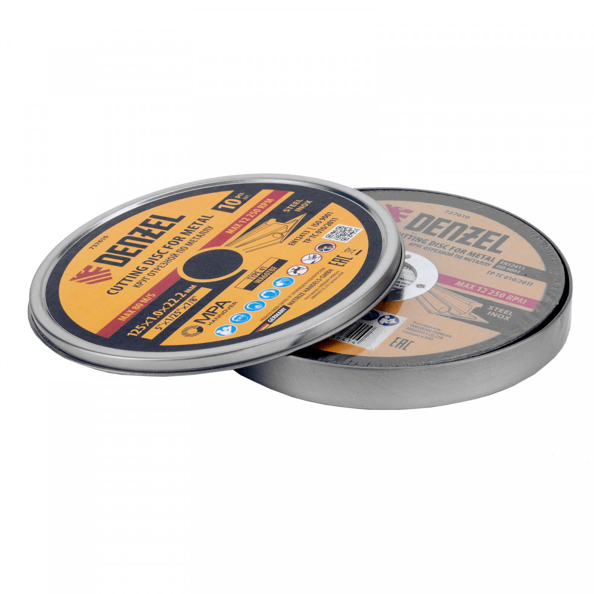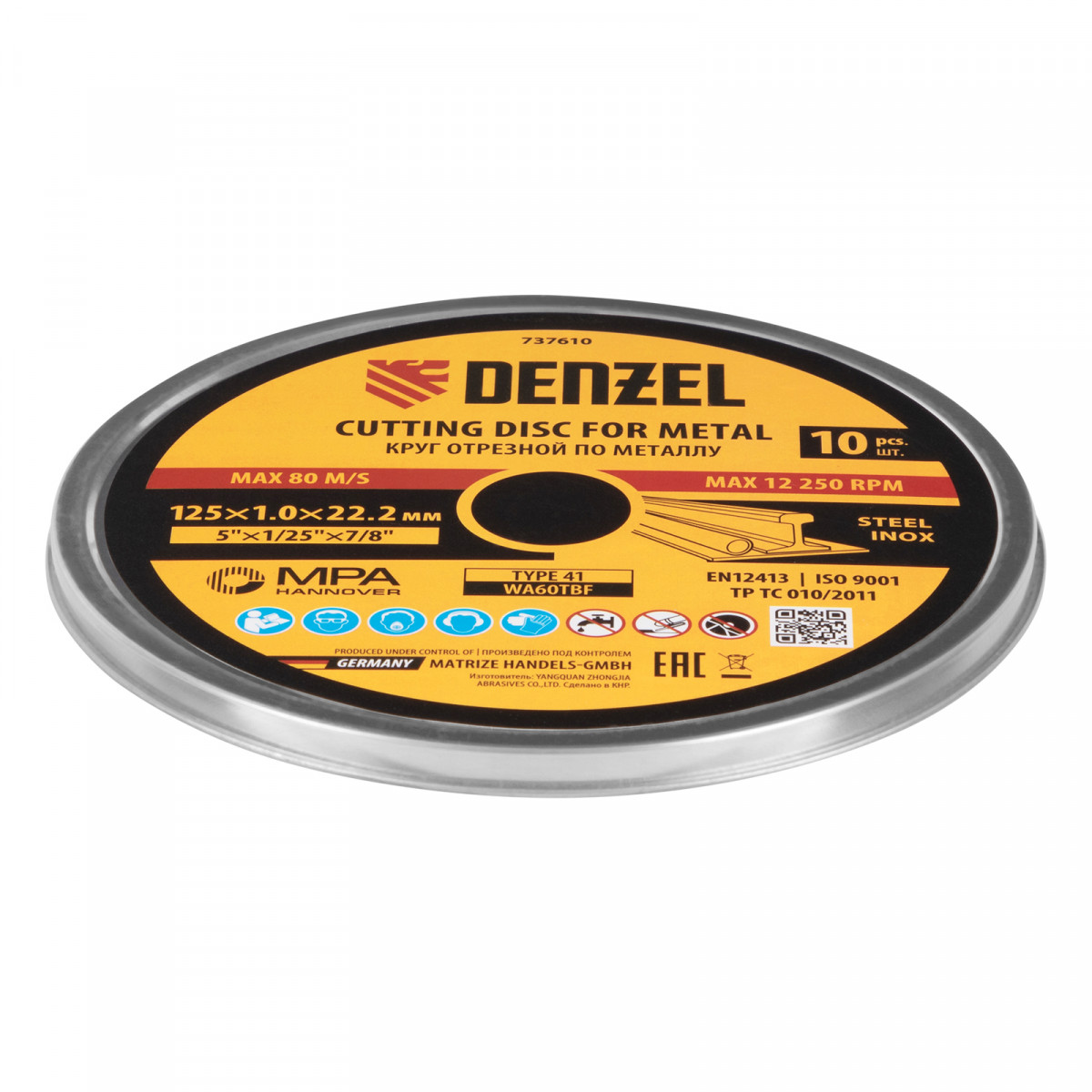 Круг отрезной по металлу, 125 х 1,0 х 22,2 мм, WA60TBF, в метал.банке, 10 шт. Denzel