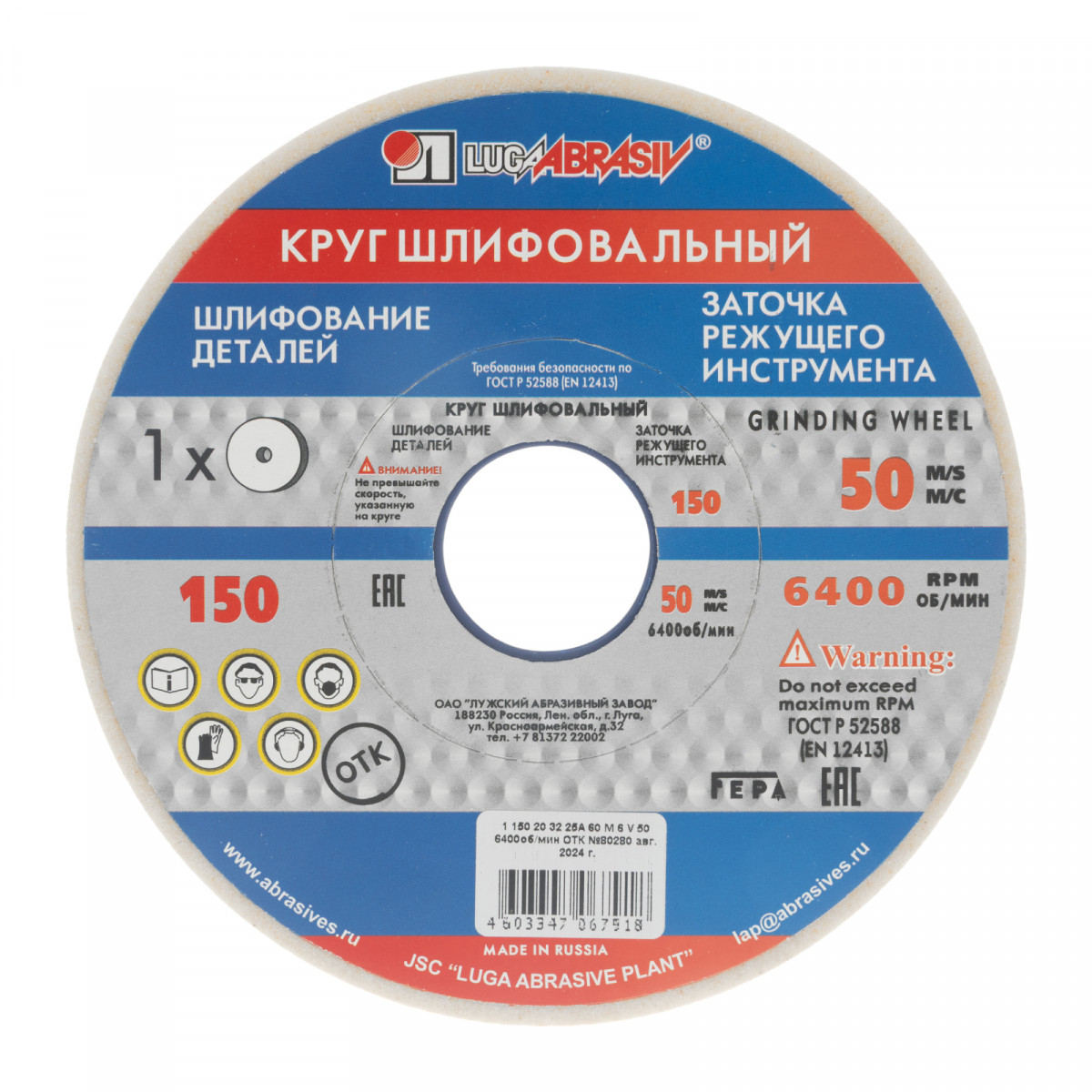 Круг шлифовальный, 150 х 20 х 32 мм, 25А, F60, (М, N) "Луга"