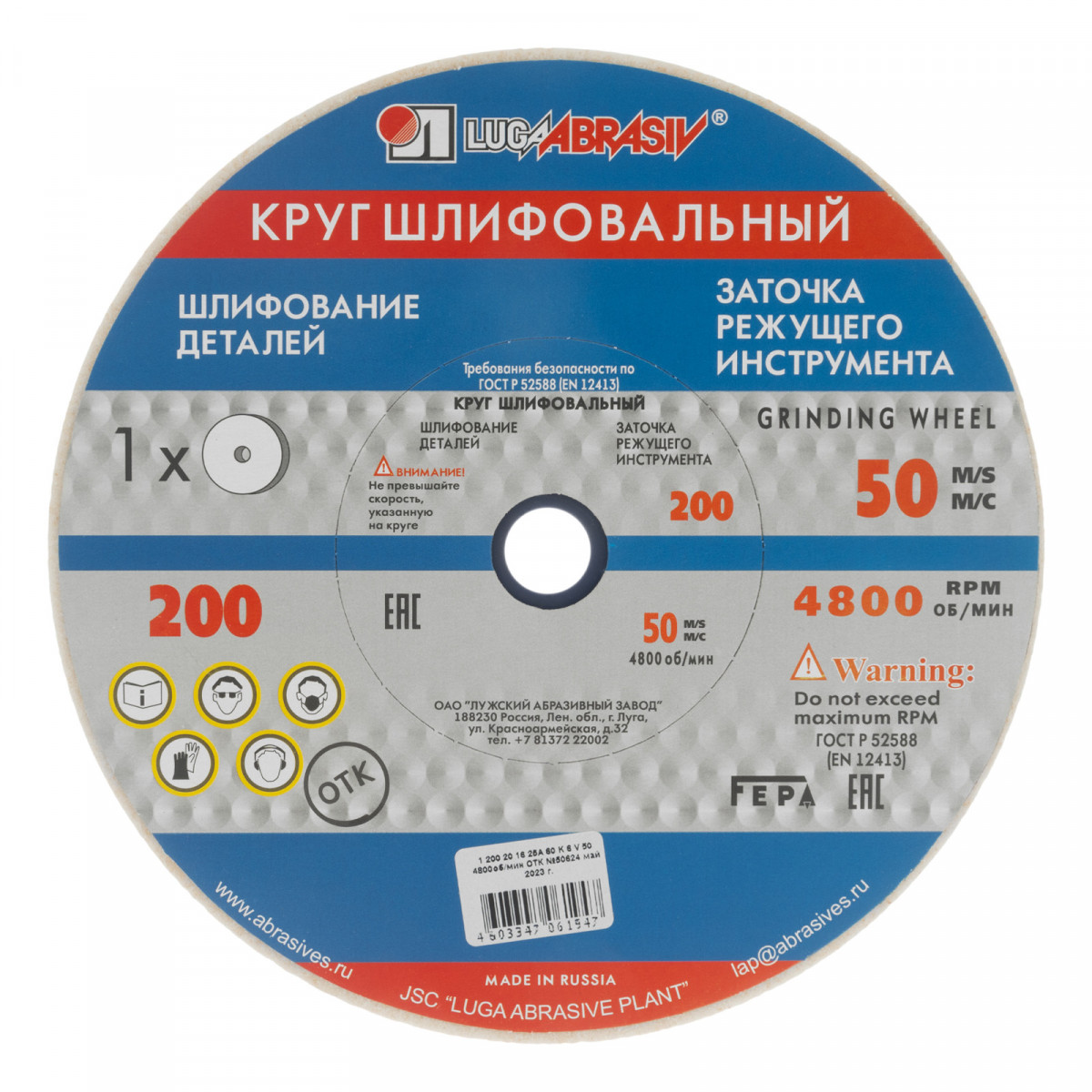Круг шлифовальный, 200 х 20 х 16 мм, 25А, F60, (K, L) "Луга"