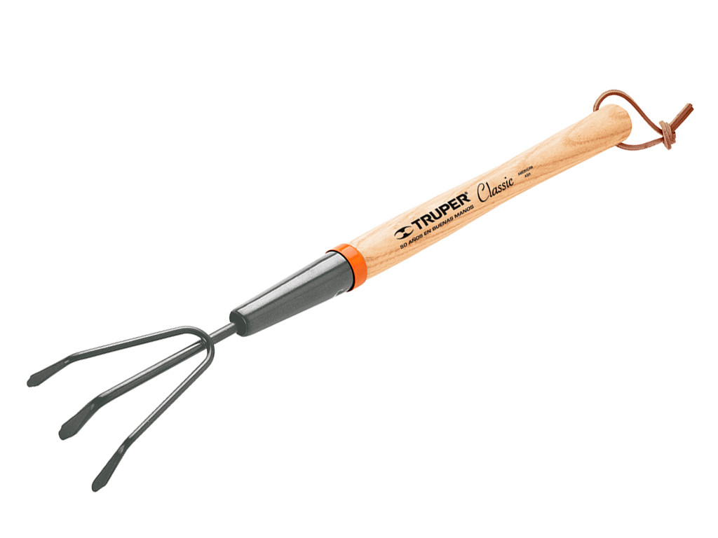 Садовый культиватор Truper 15036 используется для ручной аэрации почвы на грядках и клумбах. Инструмент прост и удобен в работе. Он состоит из металлической рабочей части с тремя зубцами и деревянной ручки, которая надежно закреплена в манжете. Культиватор садовый 15036, покрытие от налипания грунта ANTI-STICK, сталь SAE 1035, длина 38см.