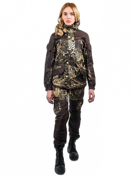 Основная ткань - с пиксельным рисунком "Triton", являющимся имиджевым элементом, из материала Дюспа бондинг – это плотный, мягкий на ощупь, легкий двуслойный материал из полиэстеровых волокон. Верхний слой – это плащевая ткань Дюспа (100% полиэстер), внутренний – трикотажное полотно. Слои надежно скреплены на PU ( полиуритановой) пропитке. Характеризуется отличными воздухопроницаемыми и ветрозащитными свойствами.