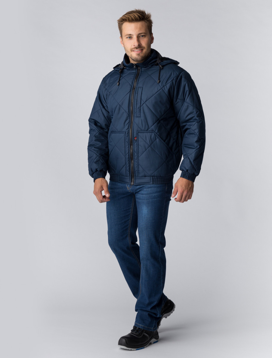 - верхним прорезным карманом на "молнии" и нижними утеплёнными стёганными накладными карманами