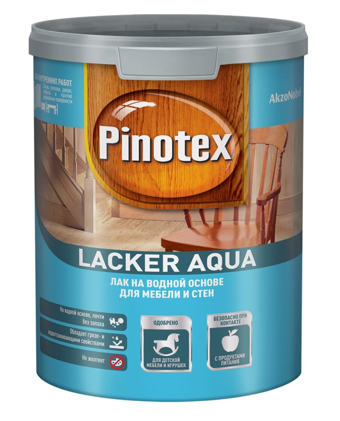 Лак Пинотекс на водной основе Lacker Aqua 70 глянцевый для мебели и стен 1л