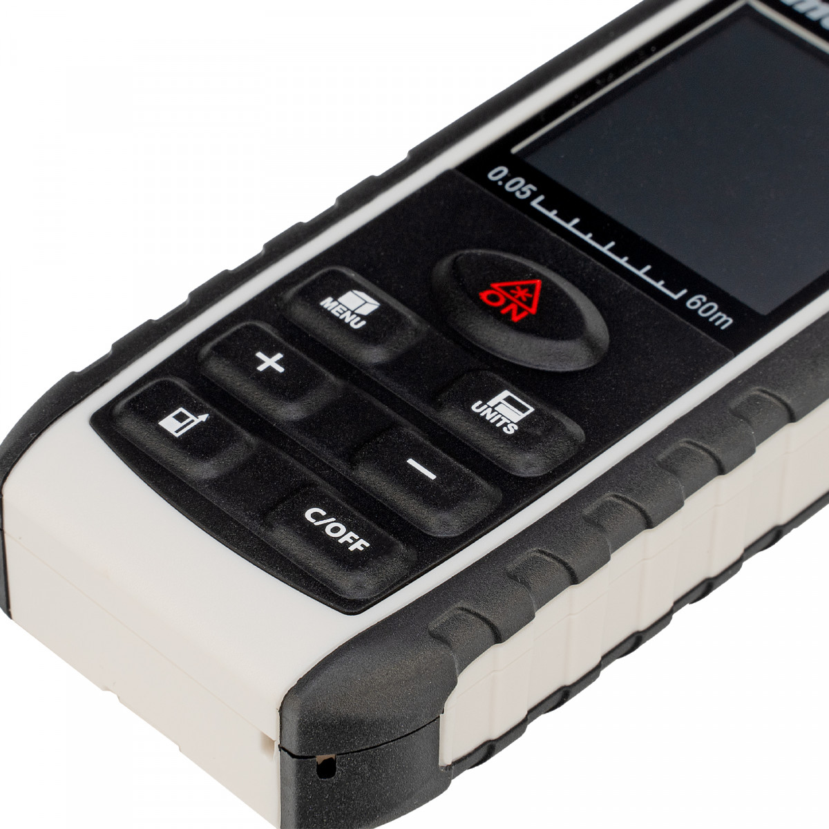 Лазерный дальномер Matrix LD-60 38016 с электронным угломером позволяет измерять длину на расстоянии от 0,05 до 60 м, вычислять площадь и объем помещения, а также измерять углы. Функция складывания и вычитания полученных результатов существенно облегчает и ускоряет работу. Дальномер будет полезен для выполнения работ по укладке плитки, установке натяжных потолков и напольных конструкций, монтаже окон и дверей, проектированию пространства.