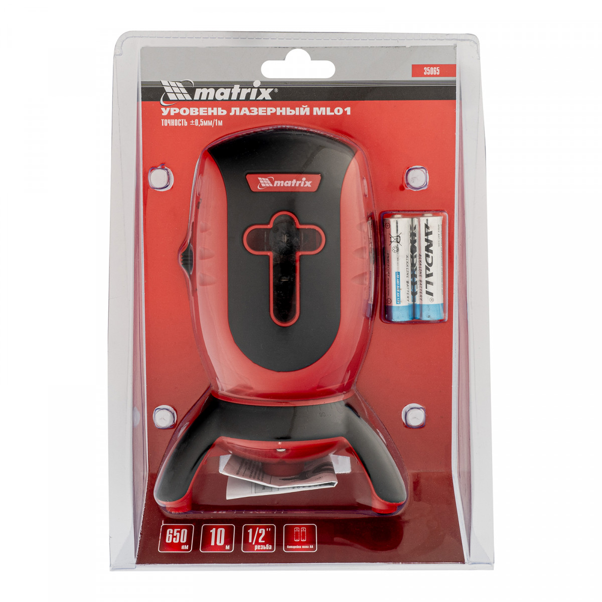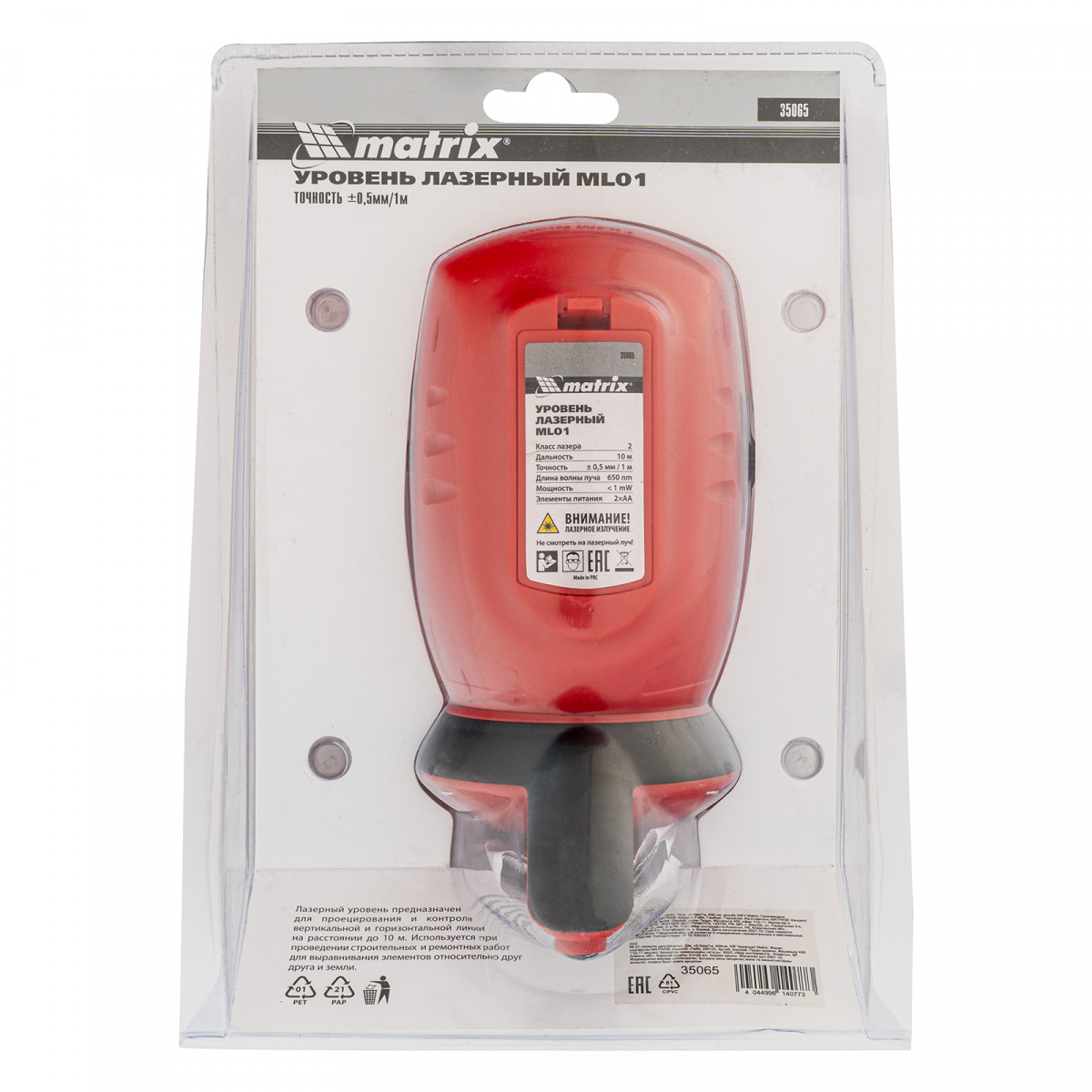 Лазерный уровень ML01T, дальность 10 м, точность ± 0,5 мм, / 1 м, длина волны 650 нм, проекция 1 вертикальная 1 горизонтальная плоскость, резьба под штатив 5/8" Matrix